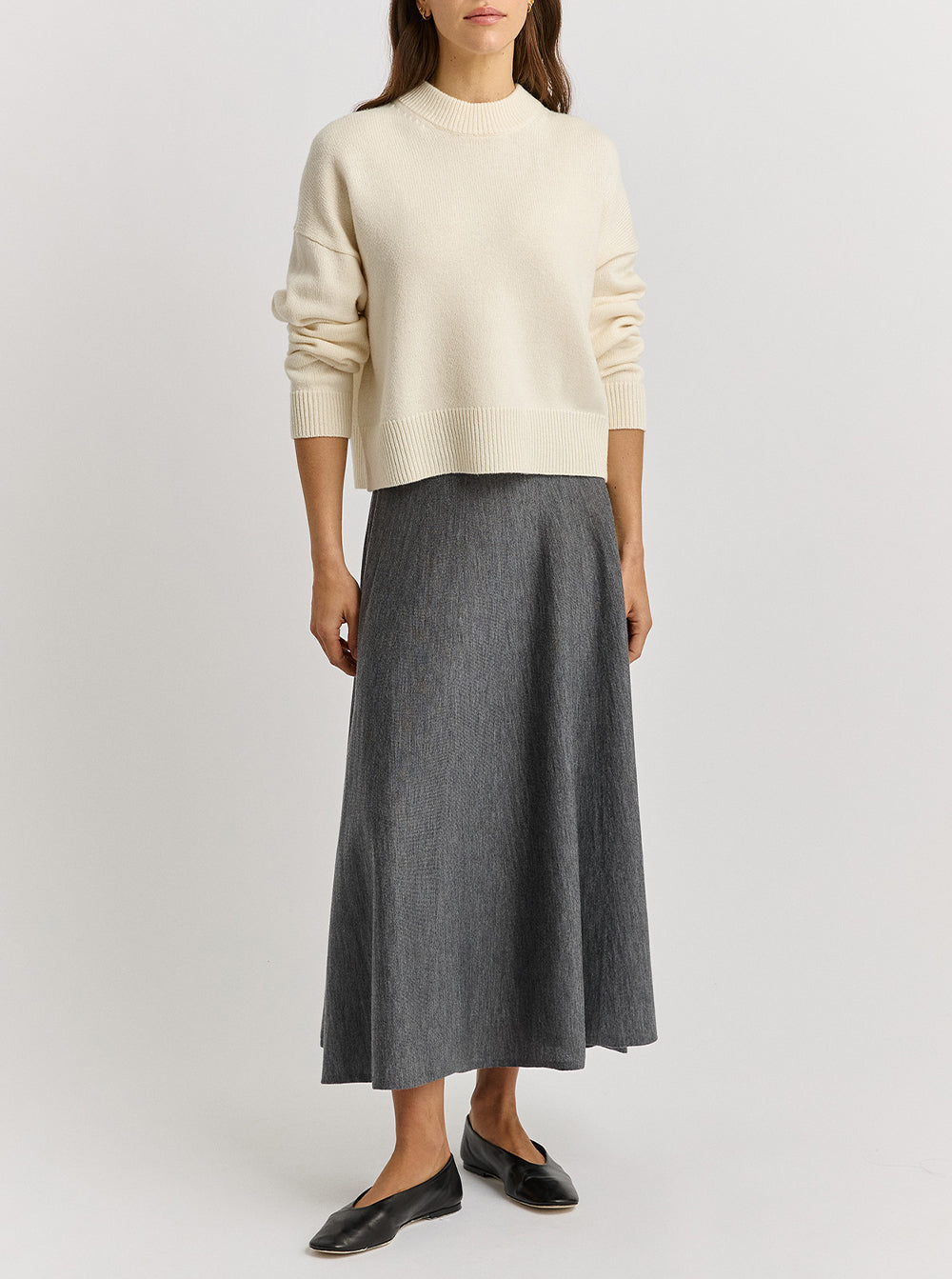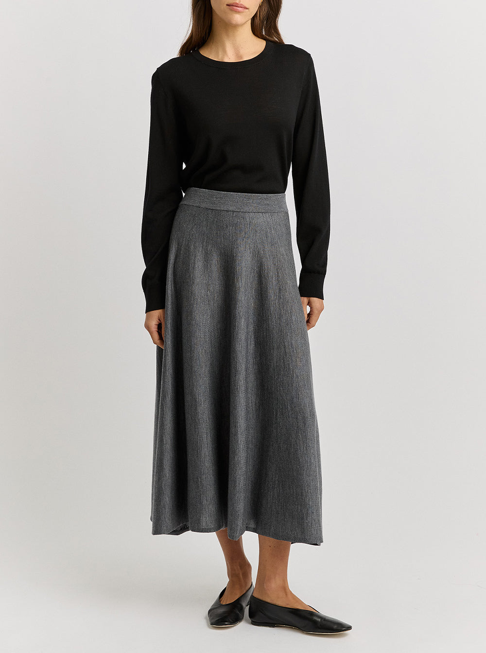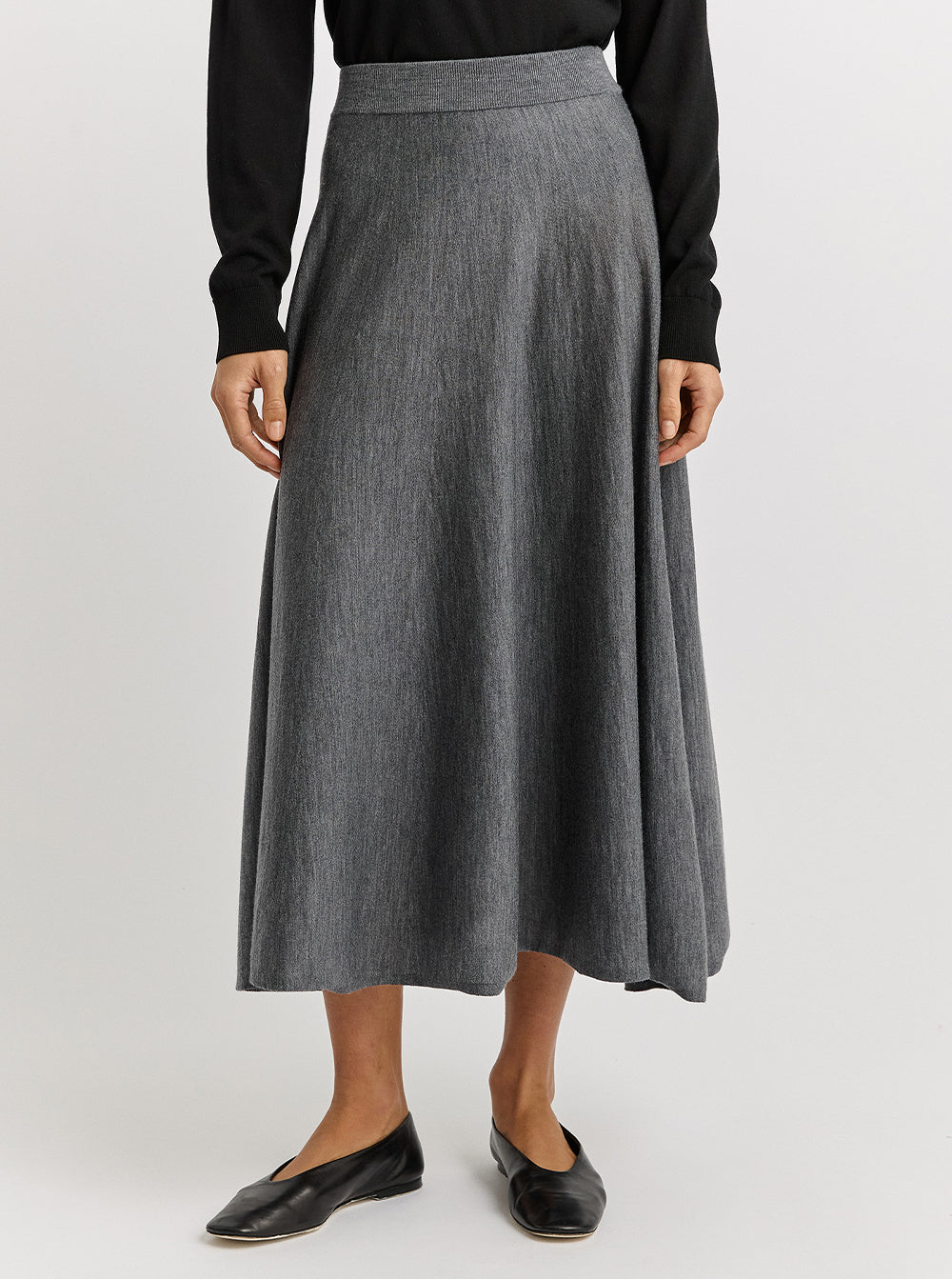 A-Line Knit Midi Skirt - Zinc