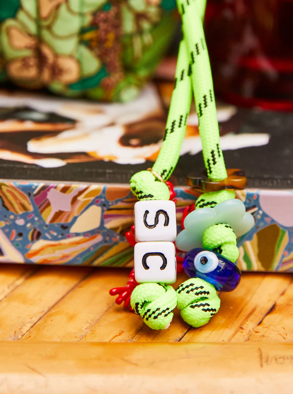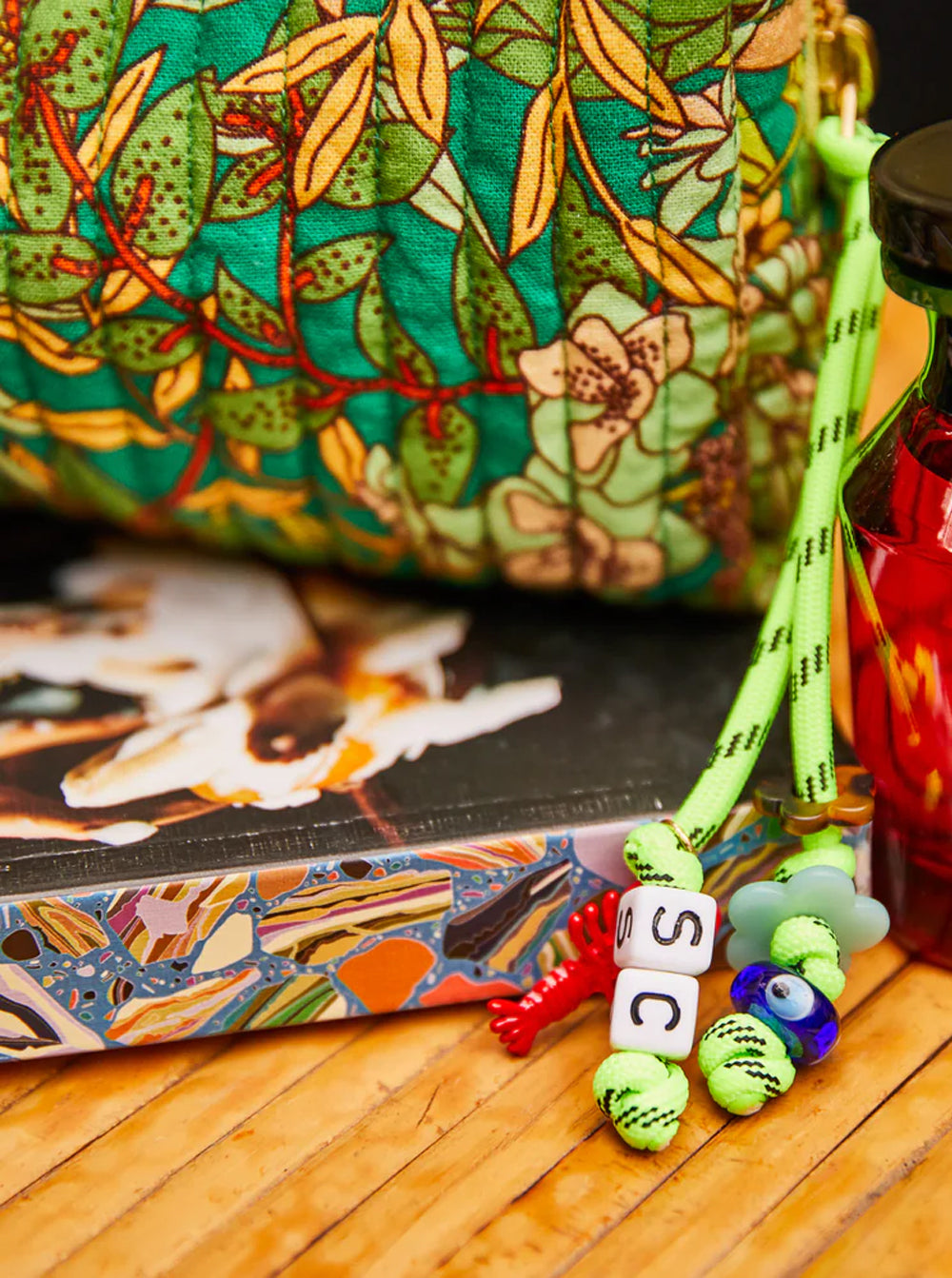 - Finished with a woven rope bag charm for playful detail