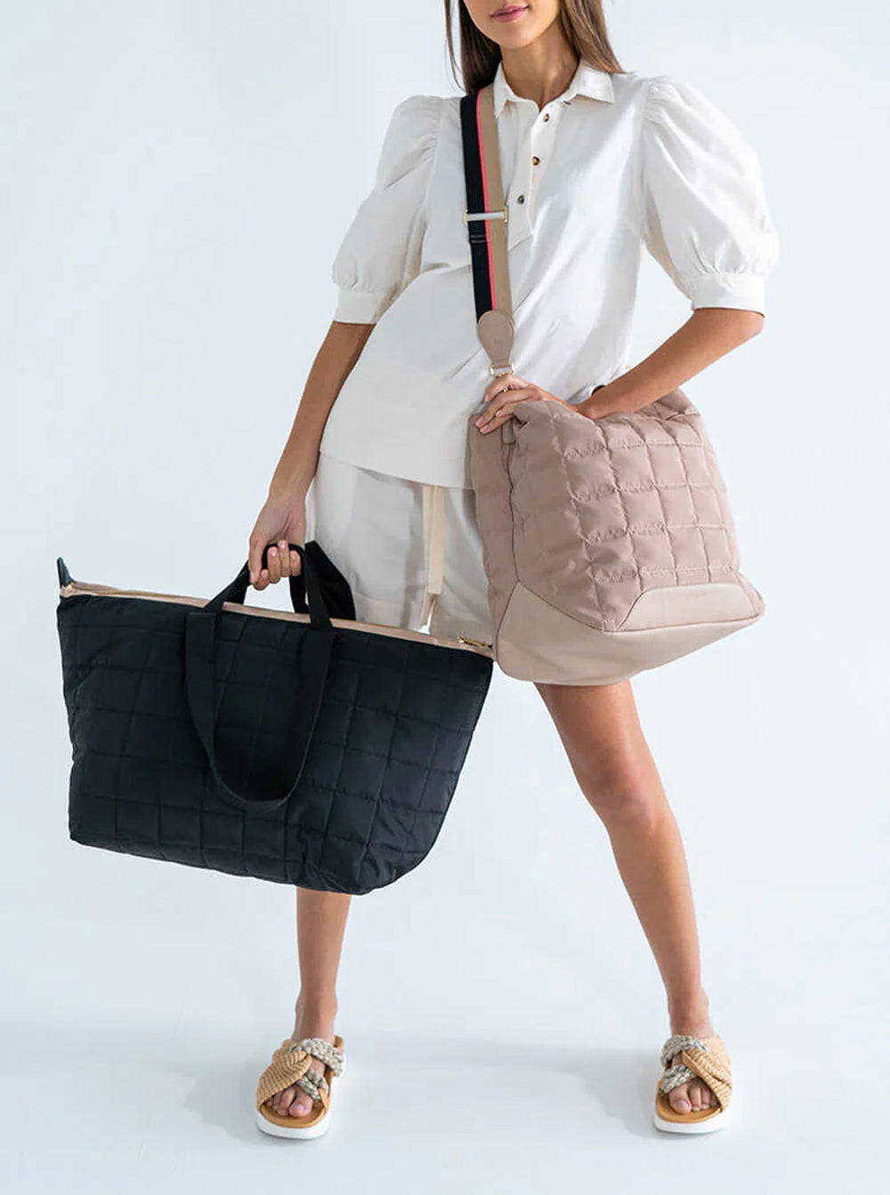Made from premium quilted nylon, the Santa Monica Tote features a bright pop nylon lining.