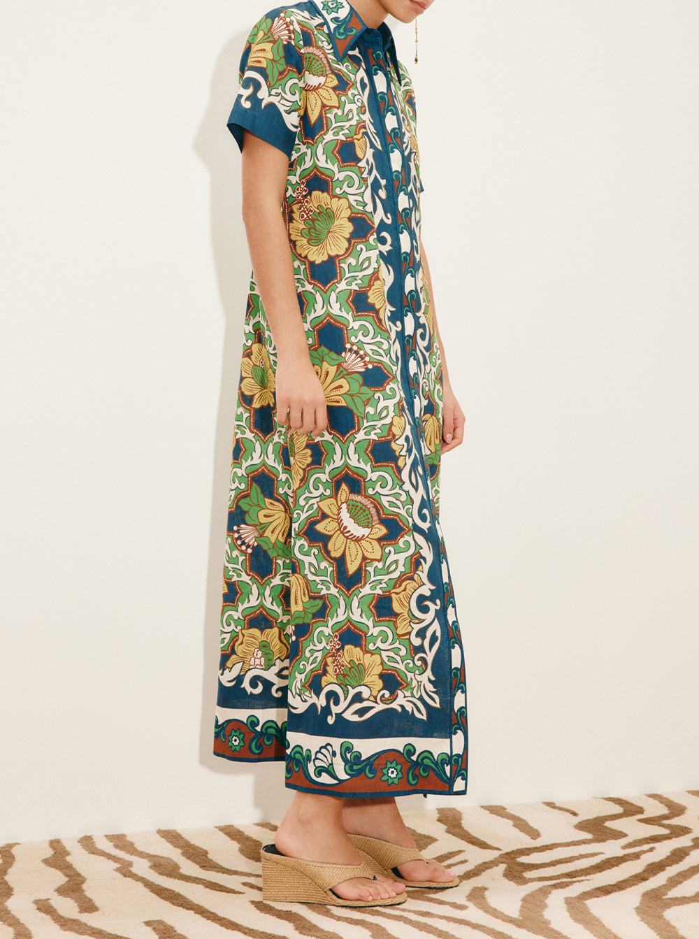 - Fitted midi shirtdress silhouette