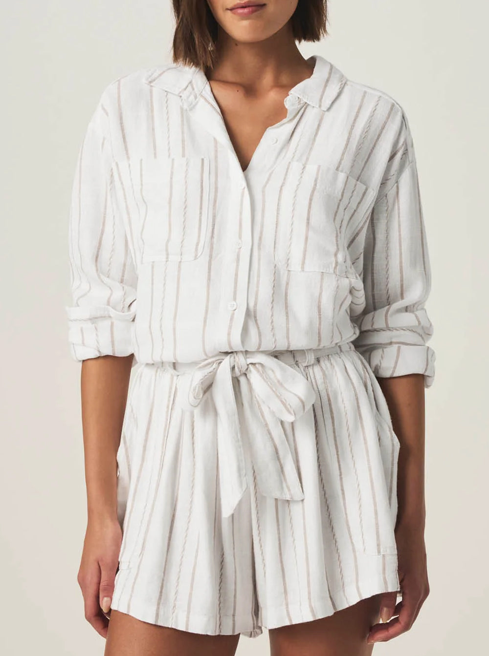 Gabrielle Stripe Button Down Shirt - White/Fawn