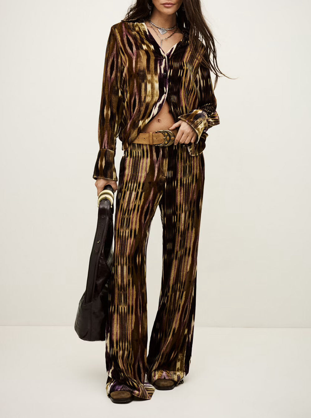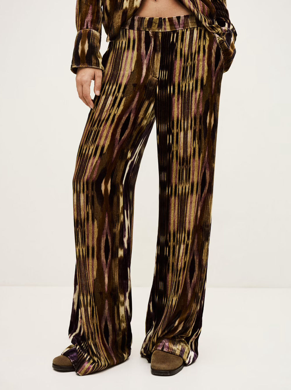 Velvo Wide-Leg Velvet Trousers - Khaki