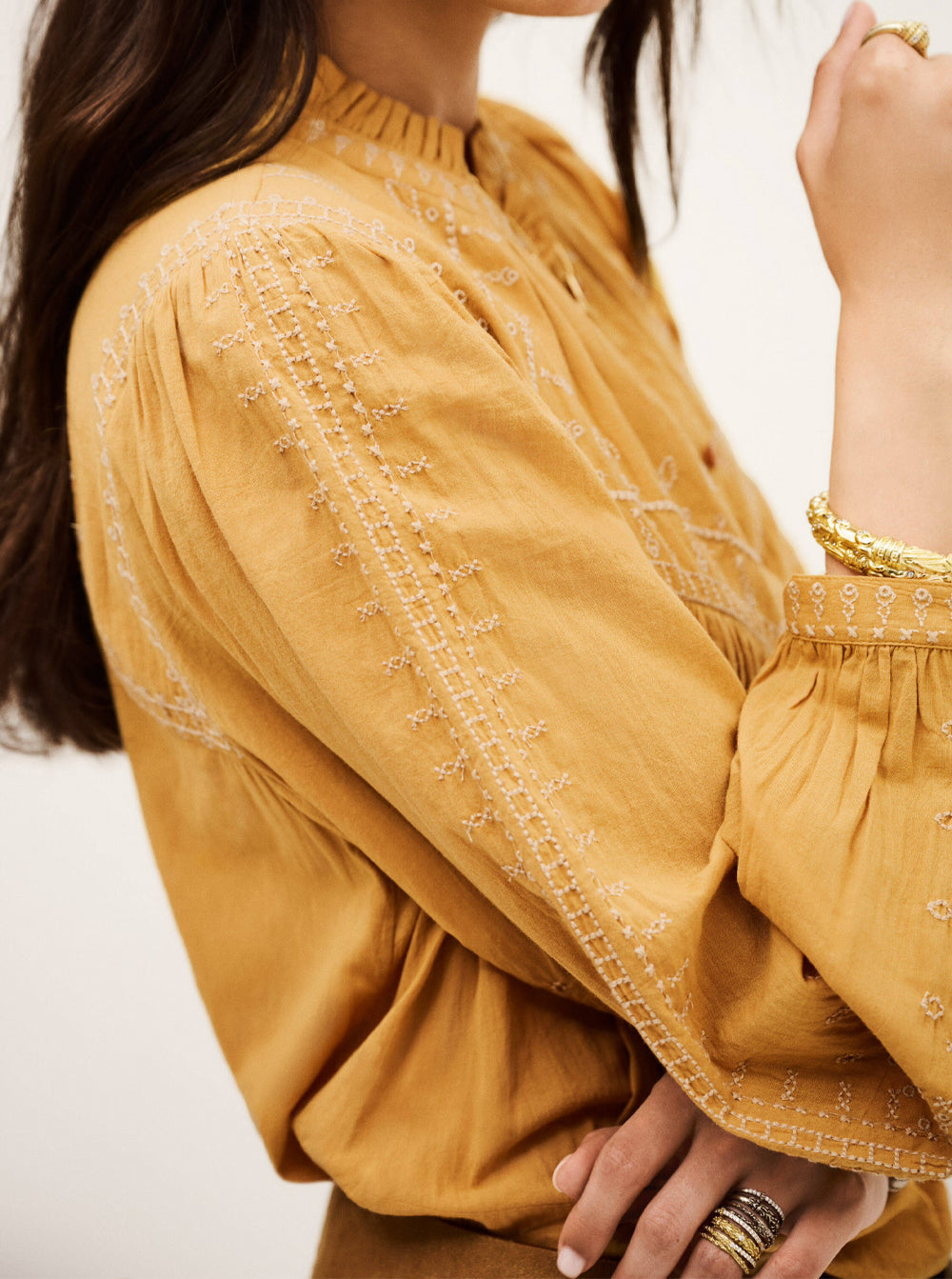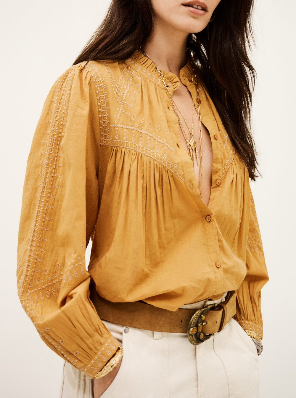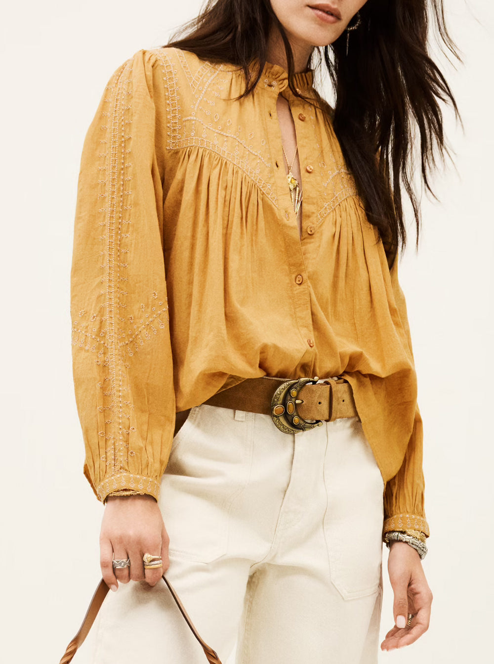 Jaky Embroidered Boho Shirt - Beige