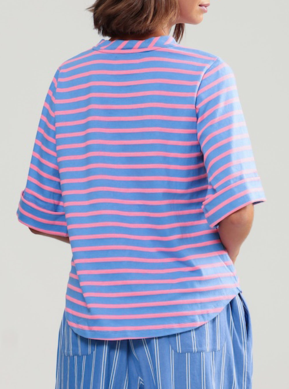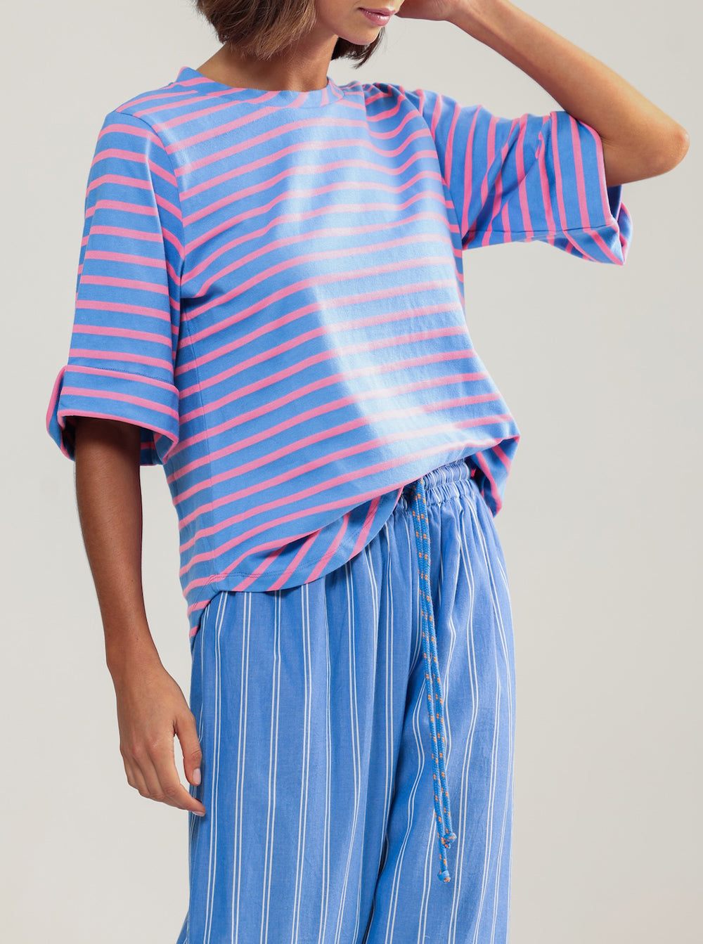 Uninvited visitors? Or just here for the waves? Either way, this tee’s ready for either & in cobalt blue & hot pink stripes we are all here for it.