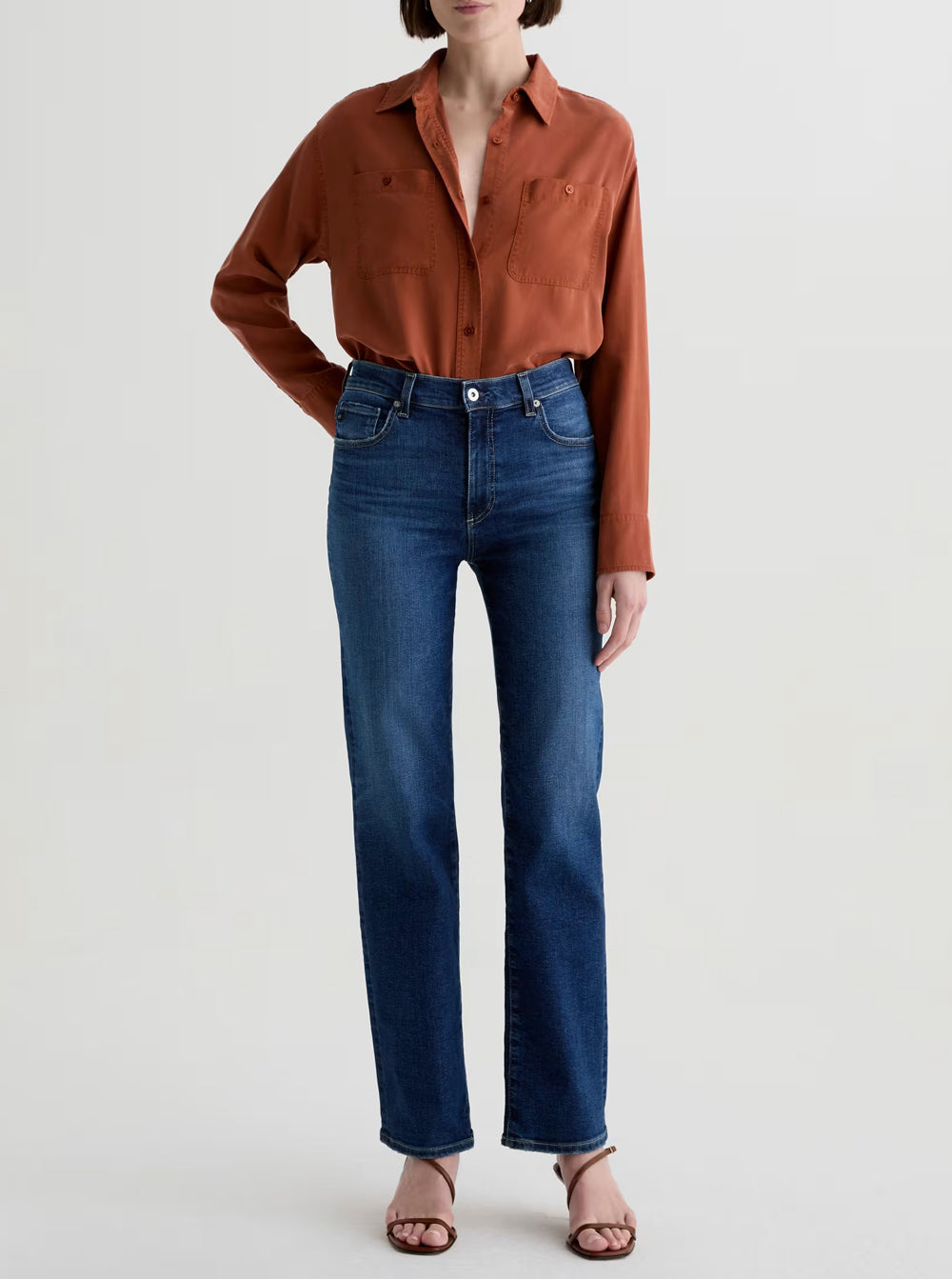 The Brinley is a mid-rise straight-leg jean with a 29.5” inseam, crafted from 11.25 oz. Quartzblue Stretch Denim in a dark wash.