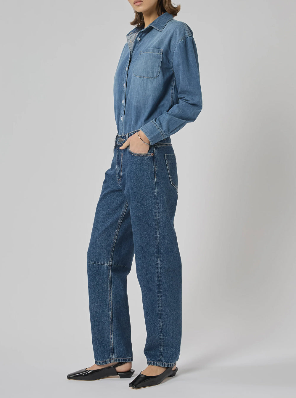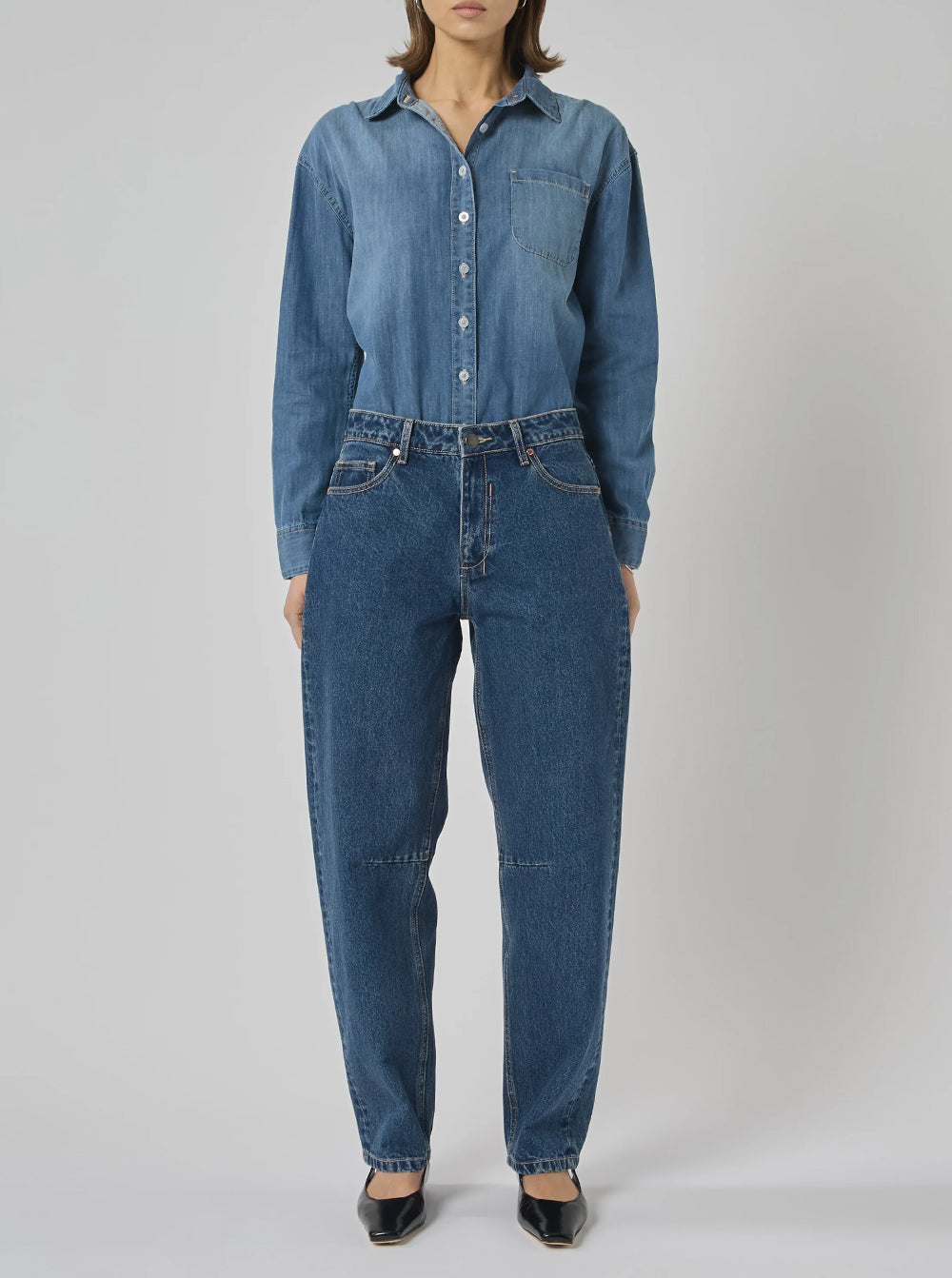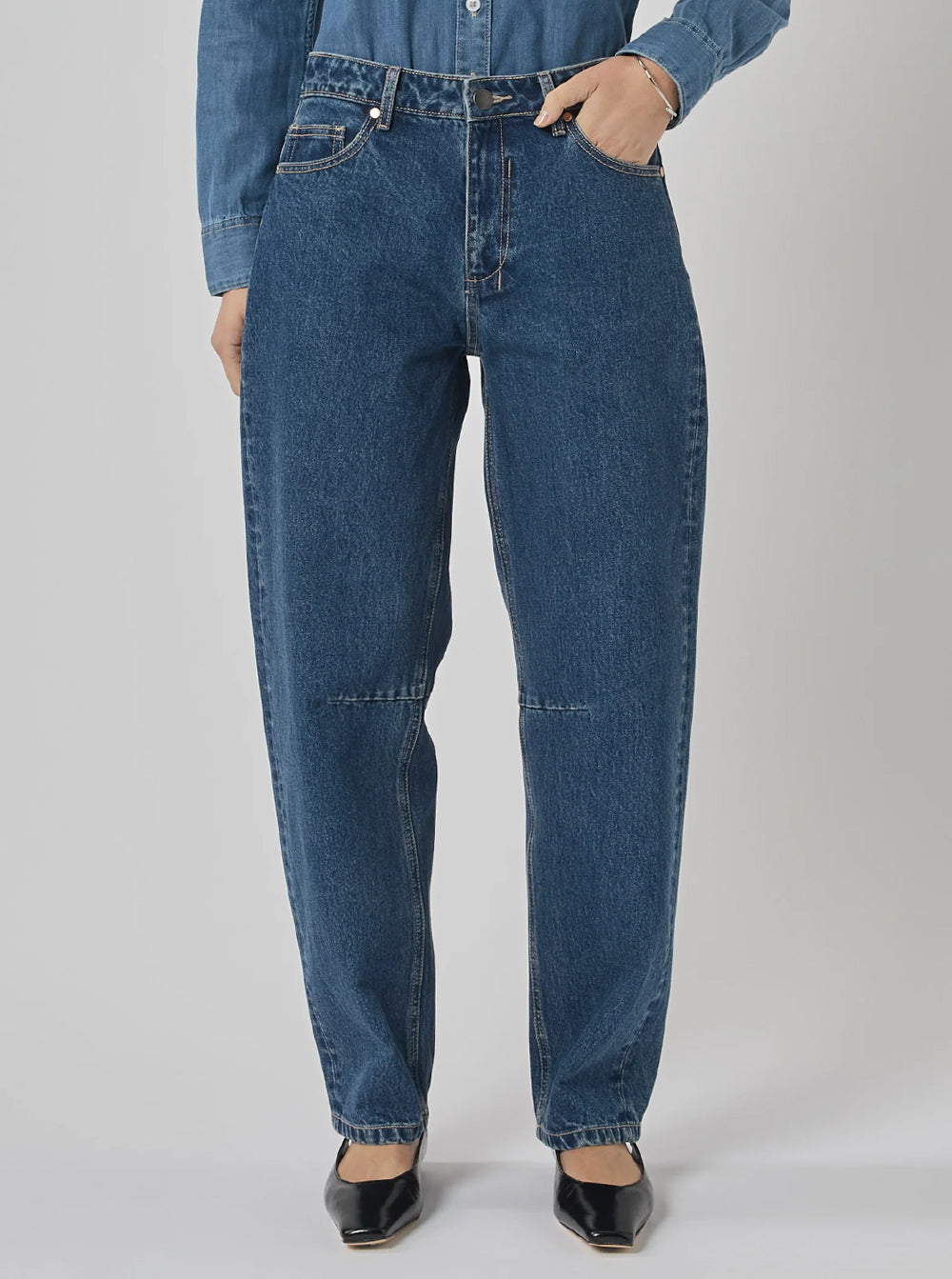Chloe Mid Rise Barrel Jeans - Pacific Blue