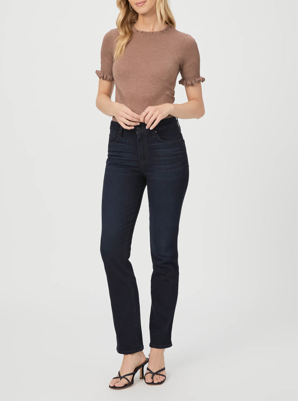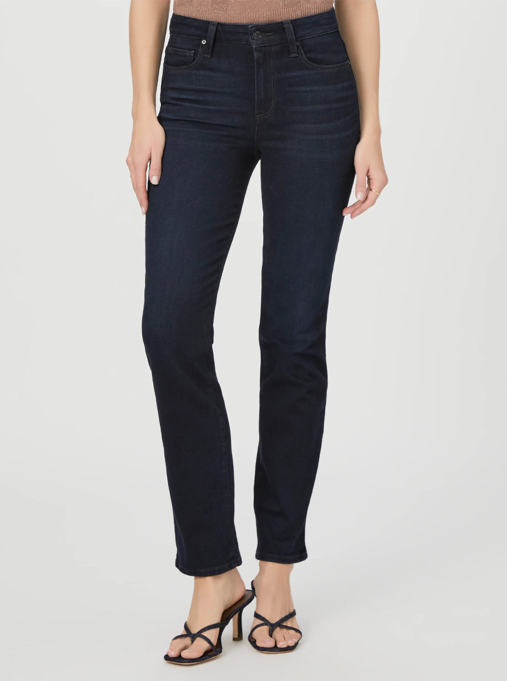 Cut from PAIGE's TRANSCEND VINTAGE denim in a chic, elevated dark wash, this style has the look of authentic vintage denim but is incredibly comfortable with plenty of stretch and recovery.