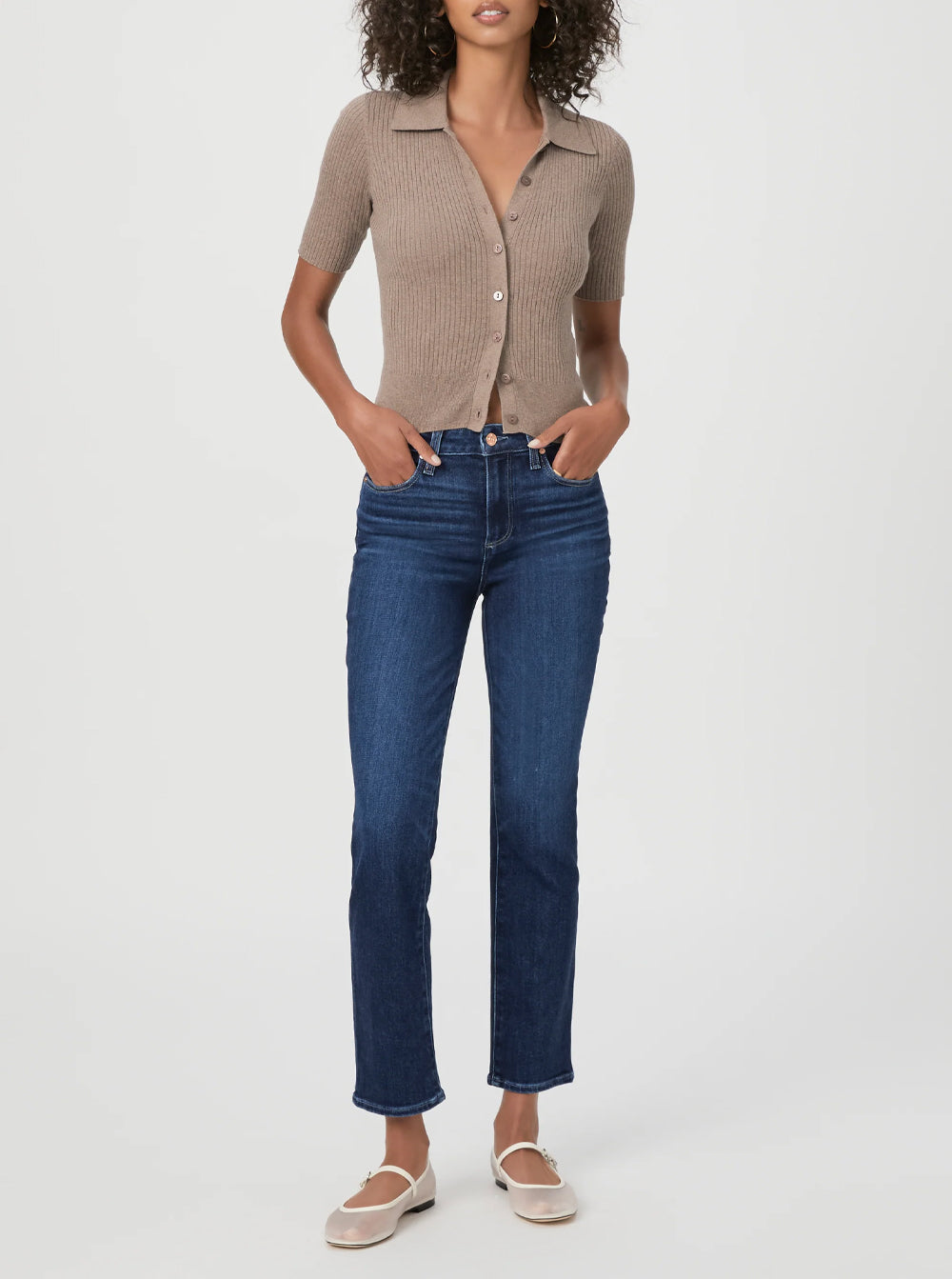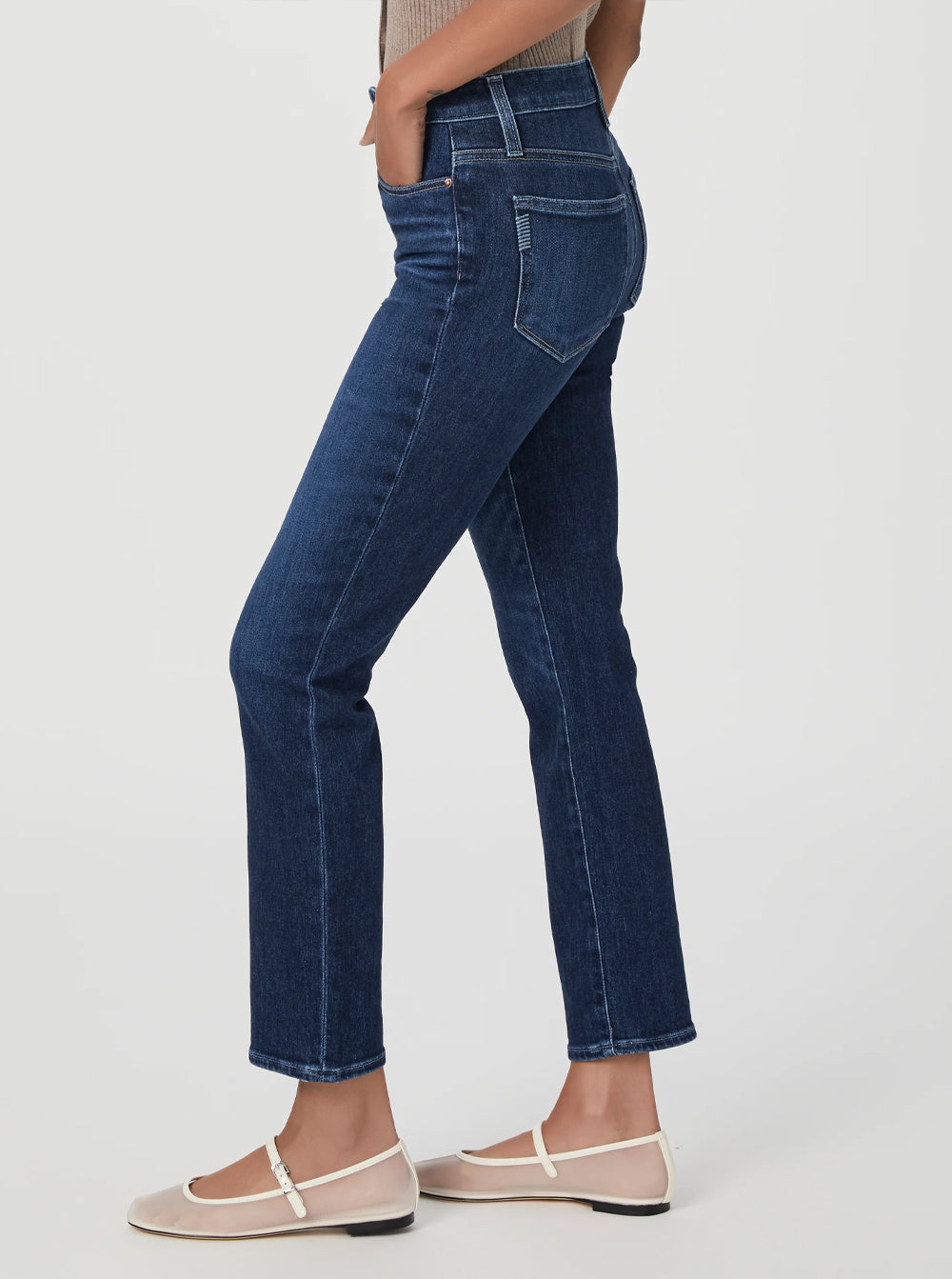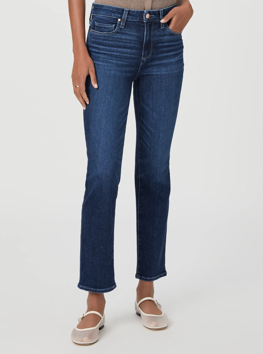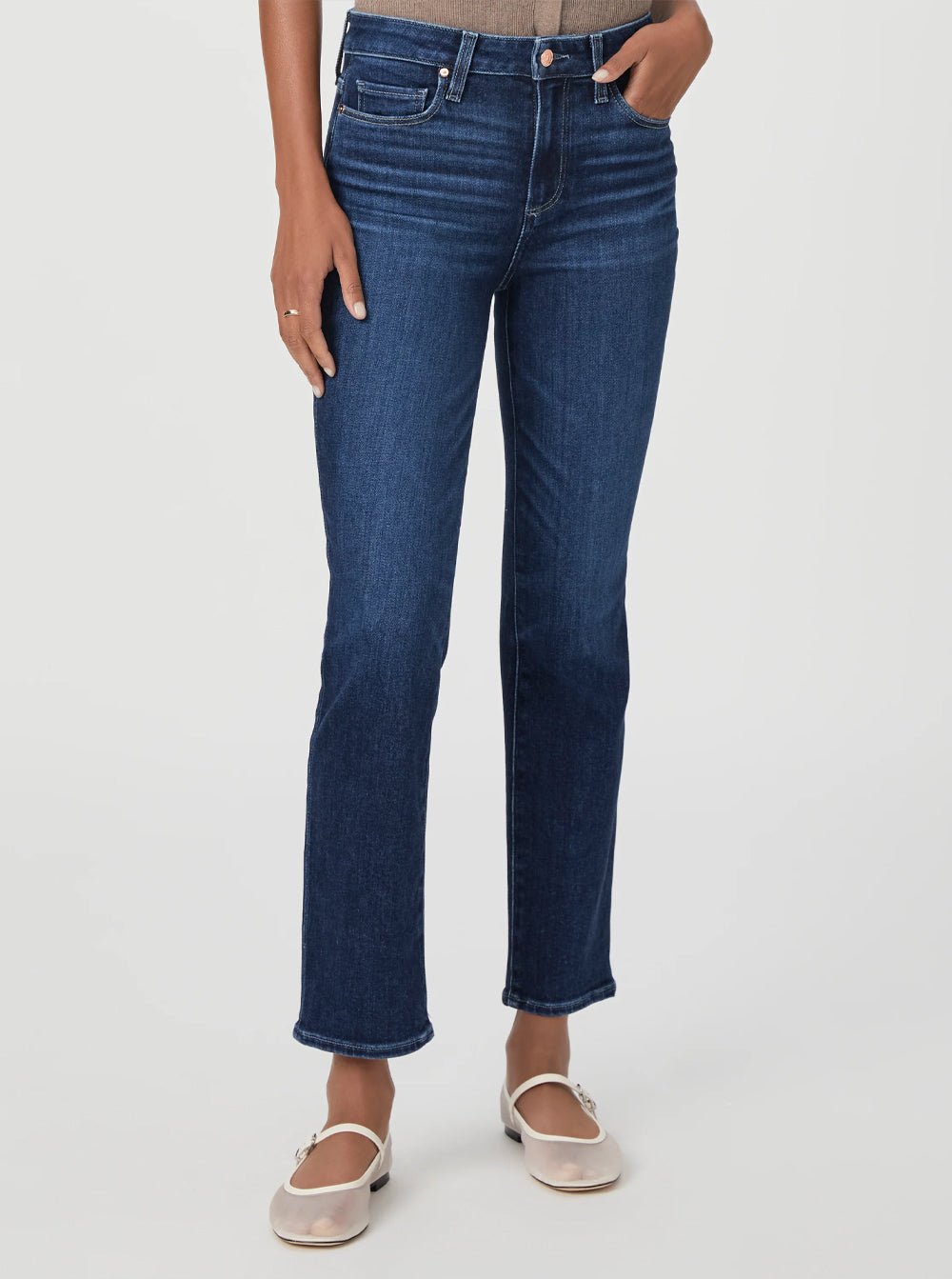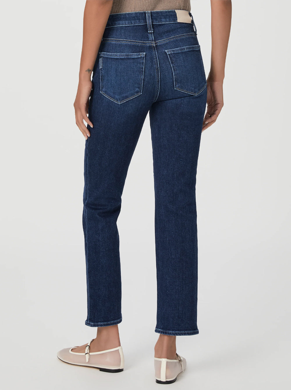 This style is crafted in customer-favorite PAIGE VINTAGE denim in a rich saturated dark wash. PAIGE VINTAGE takes all of the work out of breaking in your favorite pair of vintage jeans.