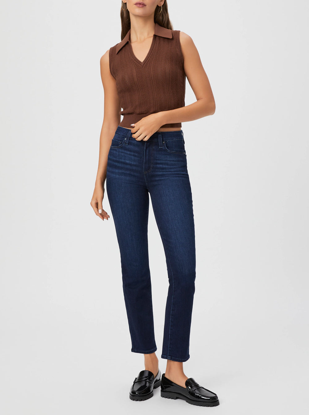 Cut from Paige's TRANSCEND VINTAGE denim in a rich dark wash with natural fading, this pair has the look of authentic vintage denim but is incredibly comfortable with plenty of stretch and recovery.