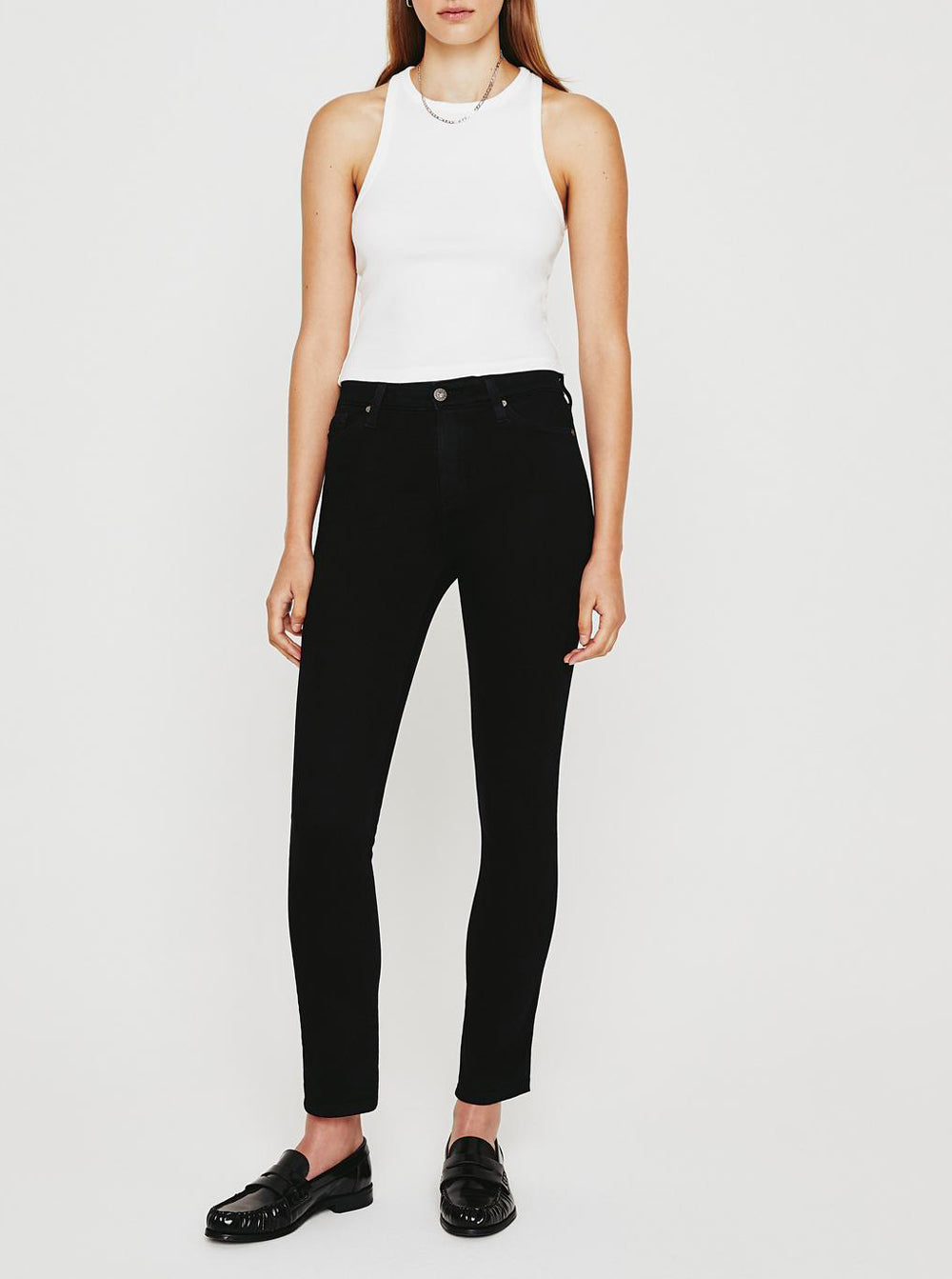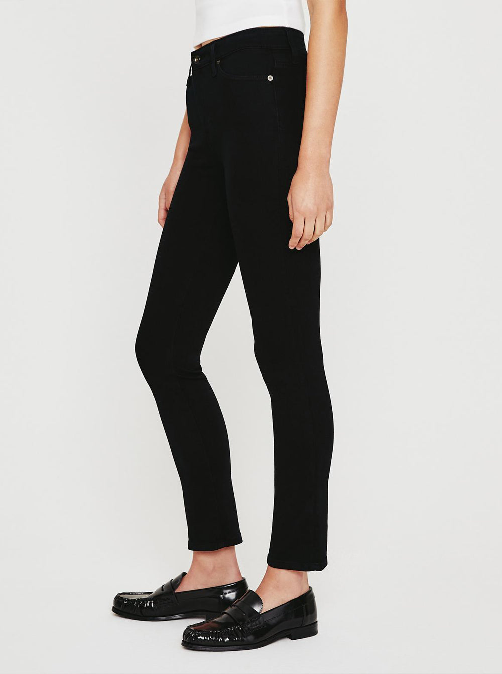 Mari is a high-rise straight leg jean for women featuring a rich black hue.