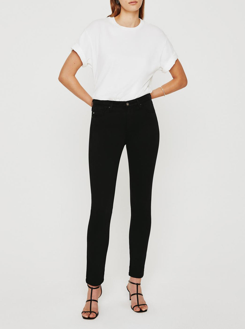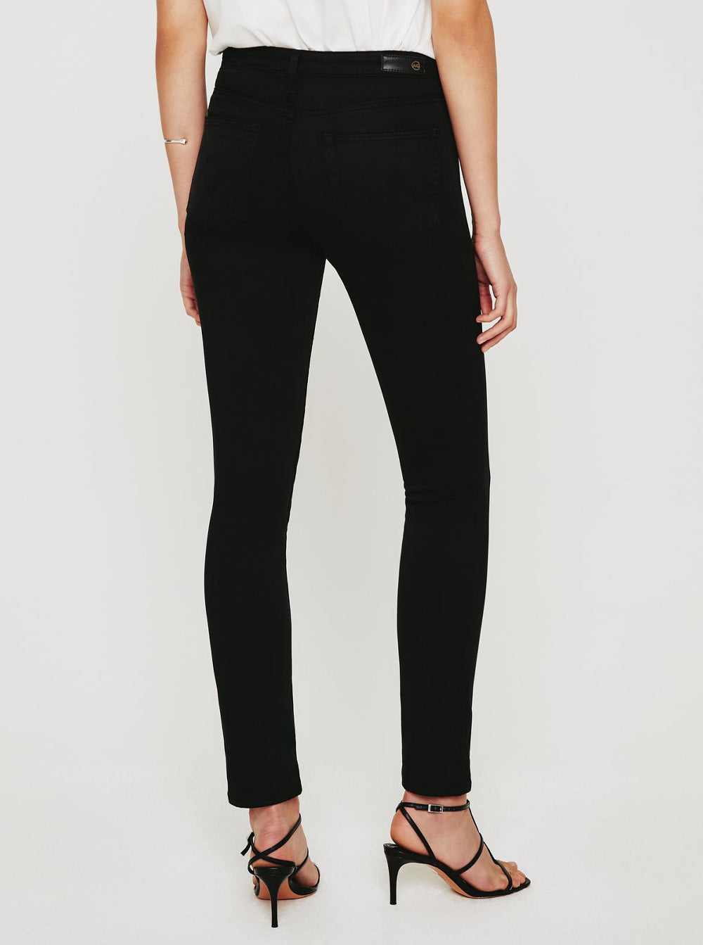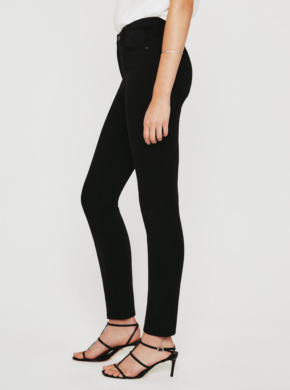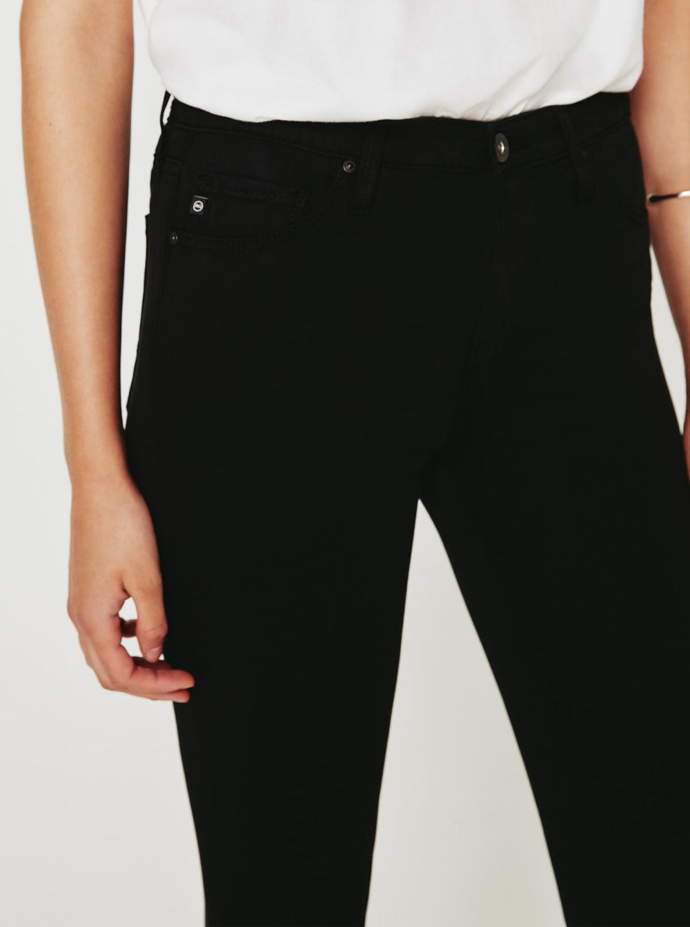 Prima is a cigarette pant for women featuring a deep black hue, cut with a fitted silhouette through the hips with slight tapering at the leg.