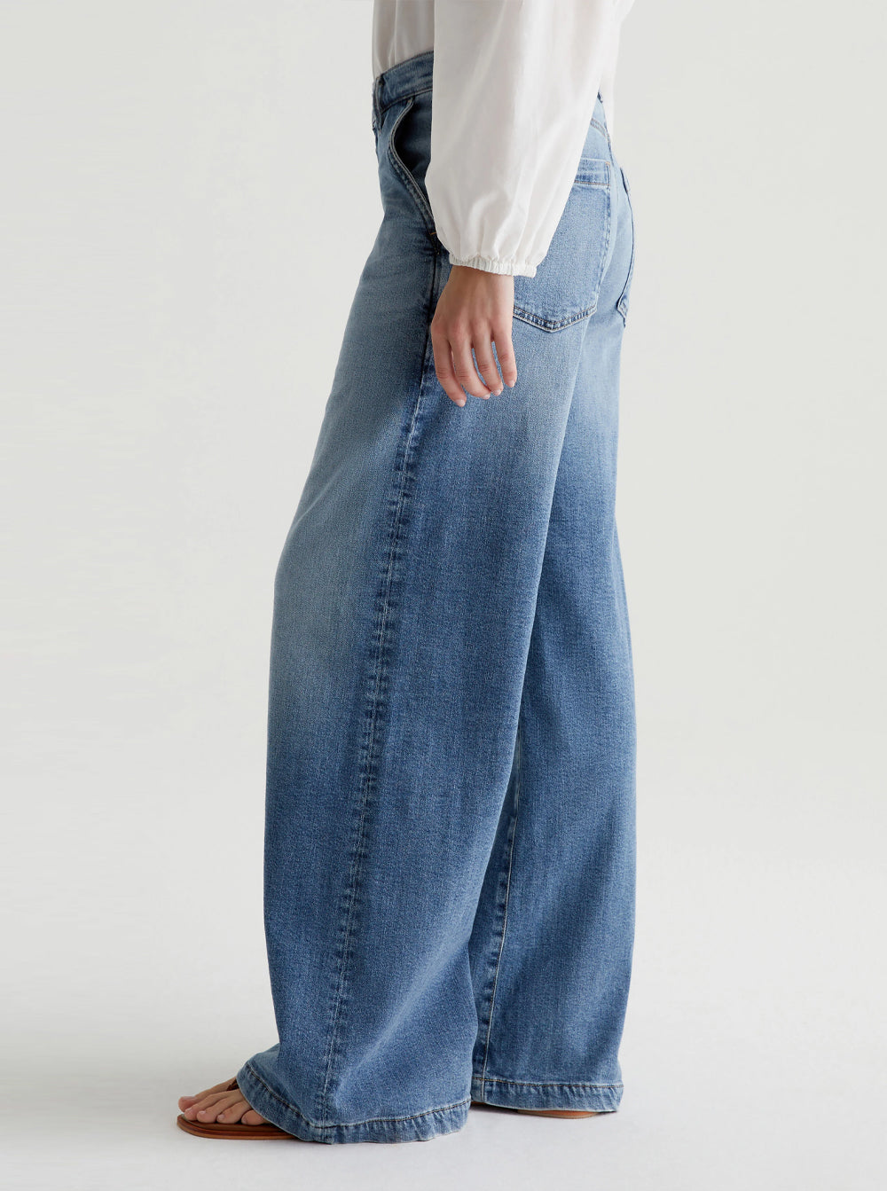 Crafted from 10 oz. Daytripper Stretch Denim, these wide-leg pants come in a light indigo wash with fading and whiskering.