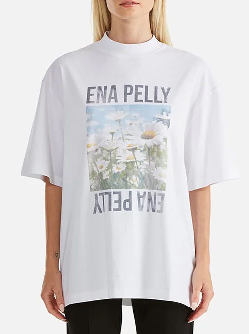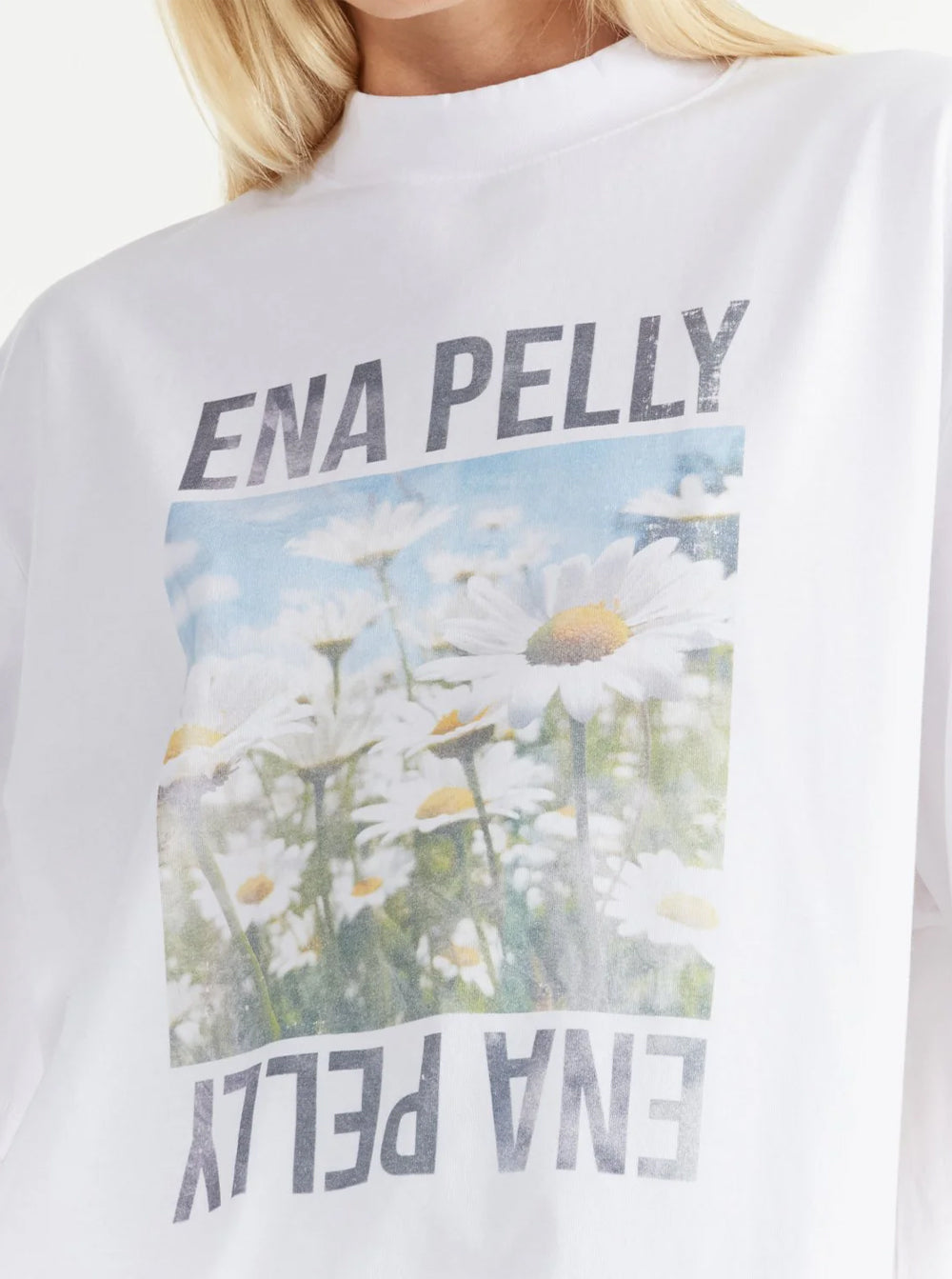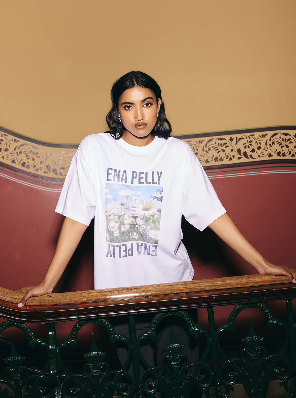 The oversized Daisy Tee in White is a limited-edition item made from a blend of recycled cotton jersey.