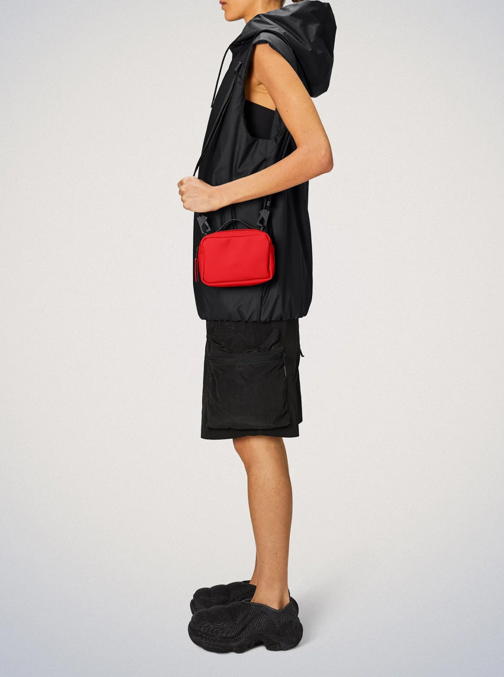 Box Bag Micro is cut in Rains’ signature waterproof PU fabric, engineered for carrying strength, durability, and a smooth feel.