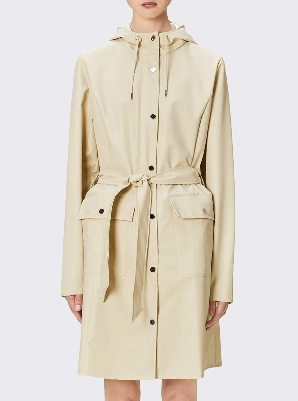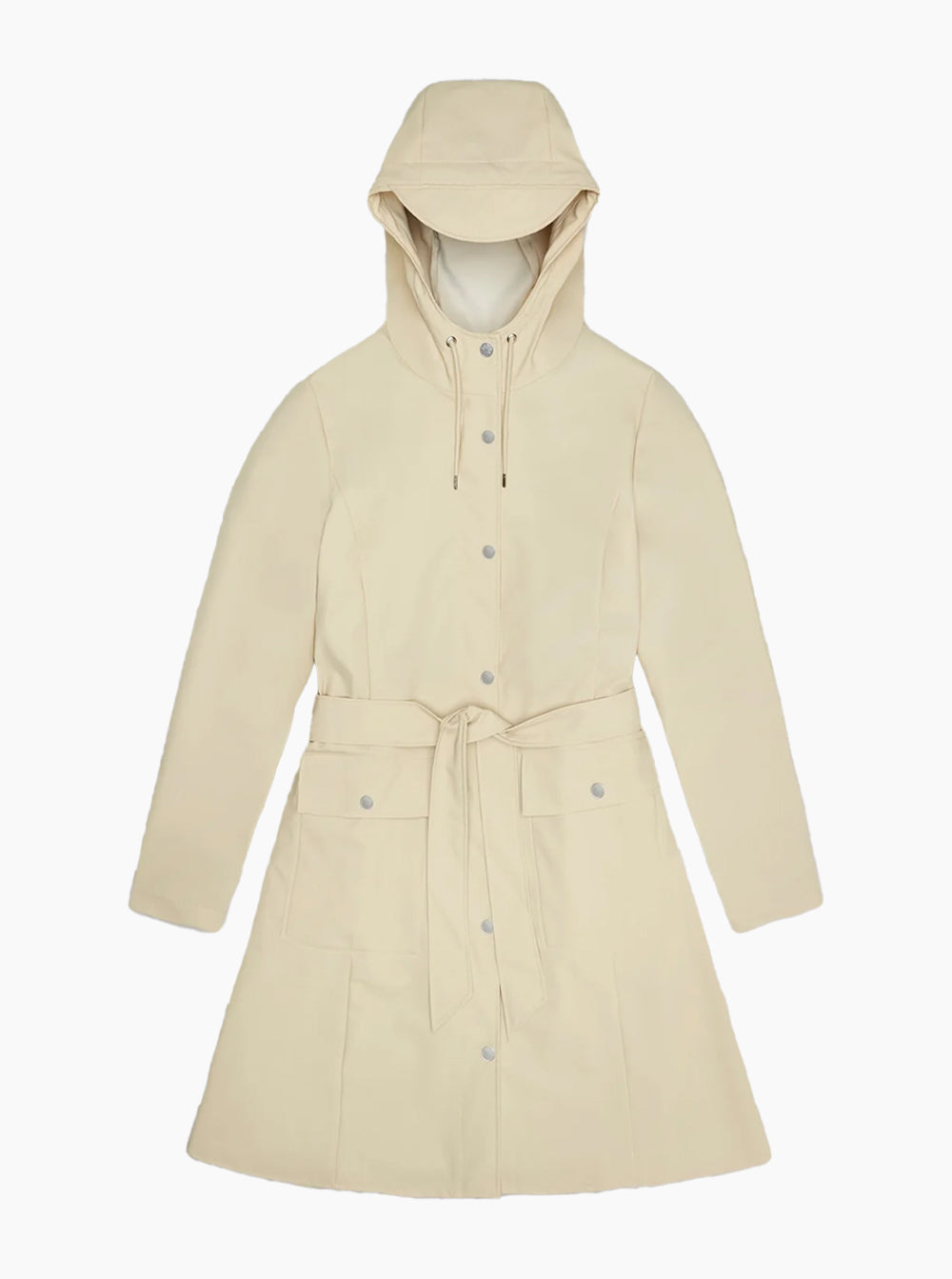 Curve Jacket is Rains’ interpretation of the women’s Trench coat. The minimal design delivers a figure-flattering silhouette, with its subtle A-line fit and waist belt.