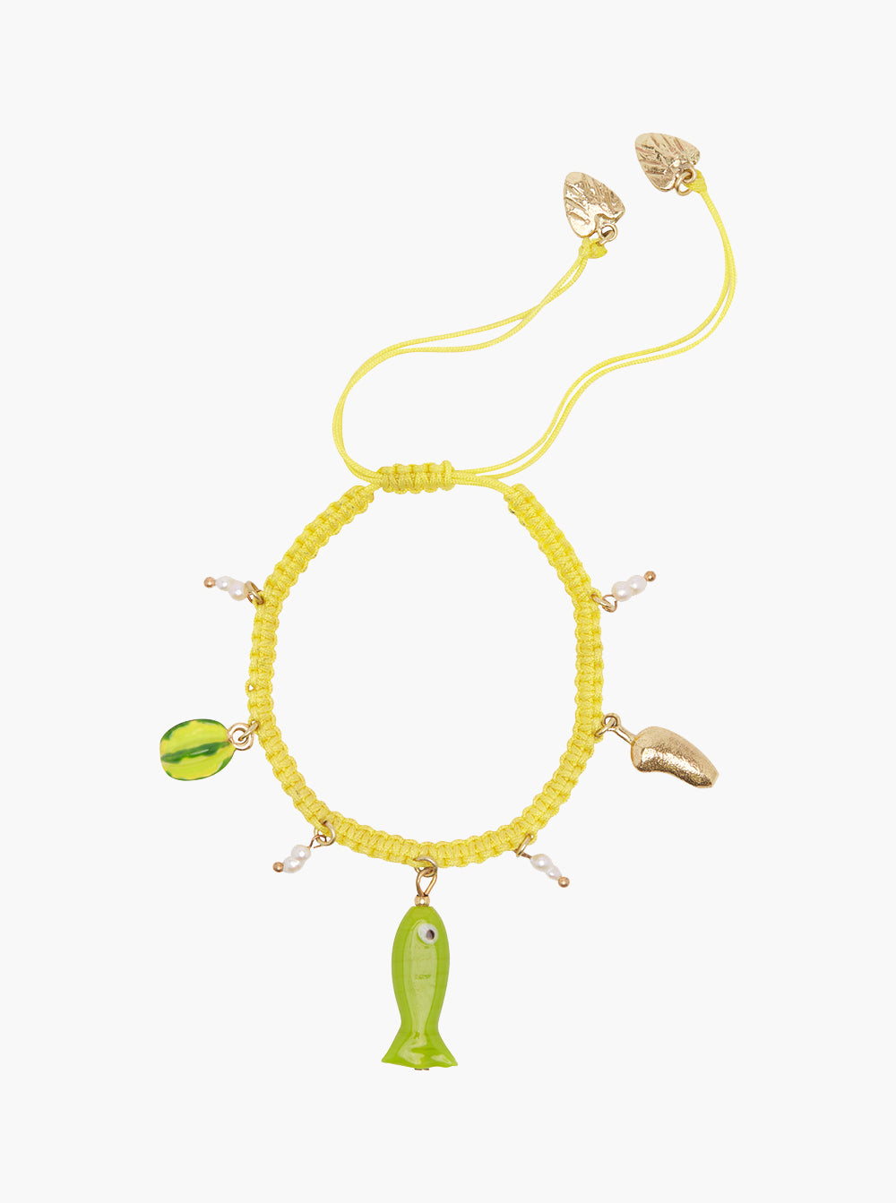 - Crafted from 100% Nano-Plated Brass/100% Poly. Cord with Freshwater Pearls and Glass Beads