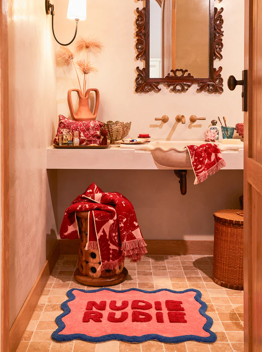 Hand-tufted by artisans, the brand's Nudie Rudie bath mats are super special and iconically Sage x Clare.