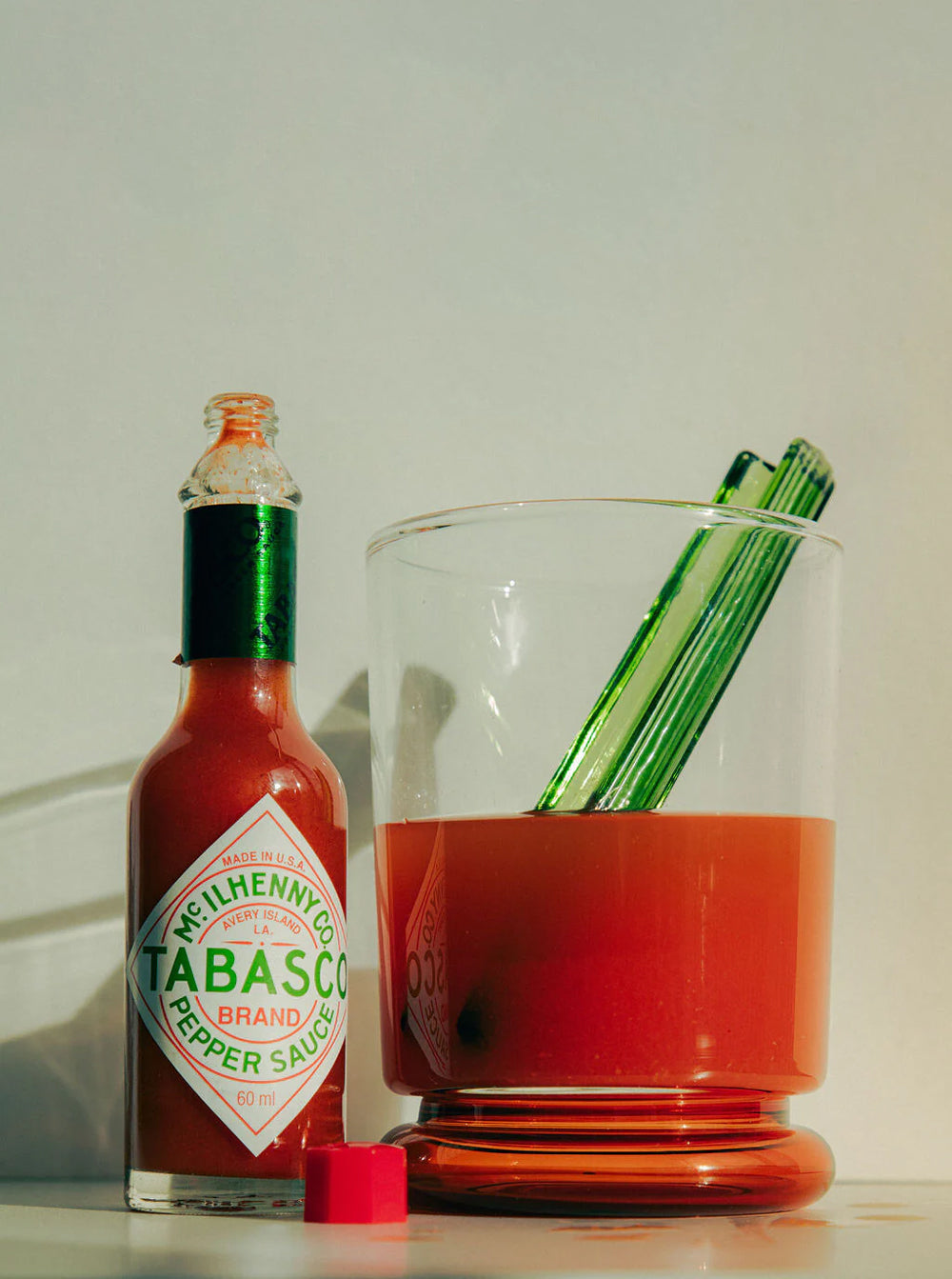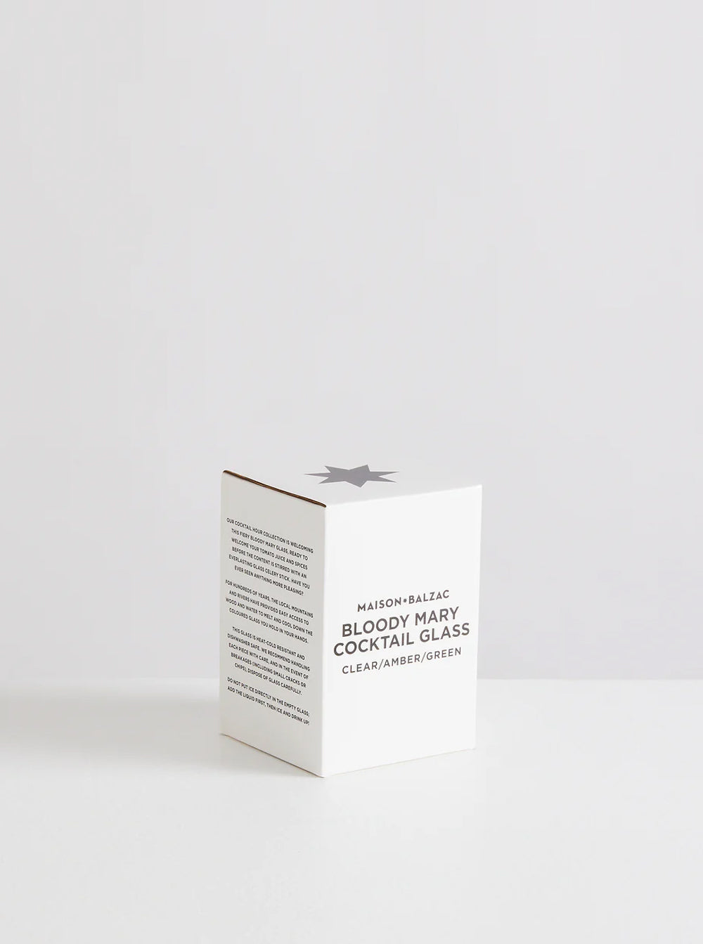 Maison Balzac's Cocktail Hour collection welcomes this fiery Bloody Mary glass – ready to embrace your tomato juice and spices before the content is stirred with a removable everlasting glass celery stick.