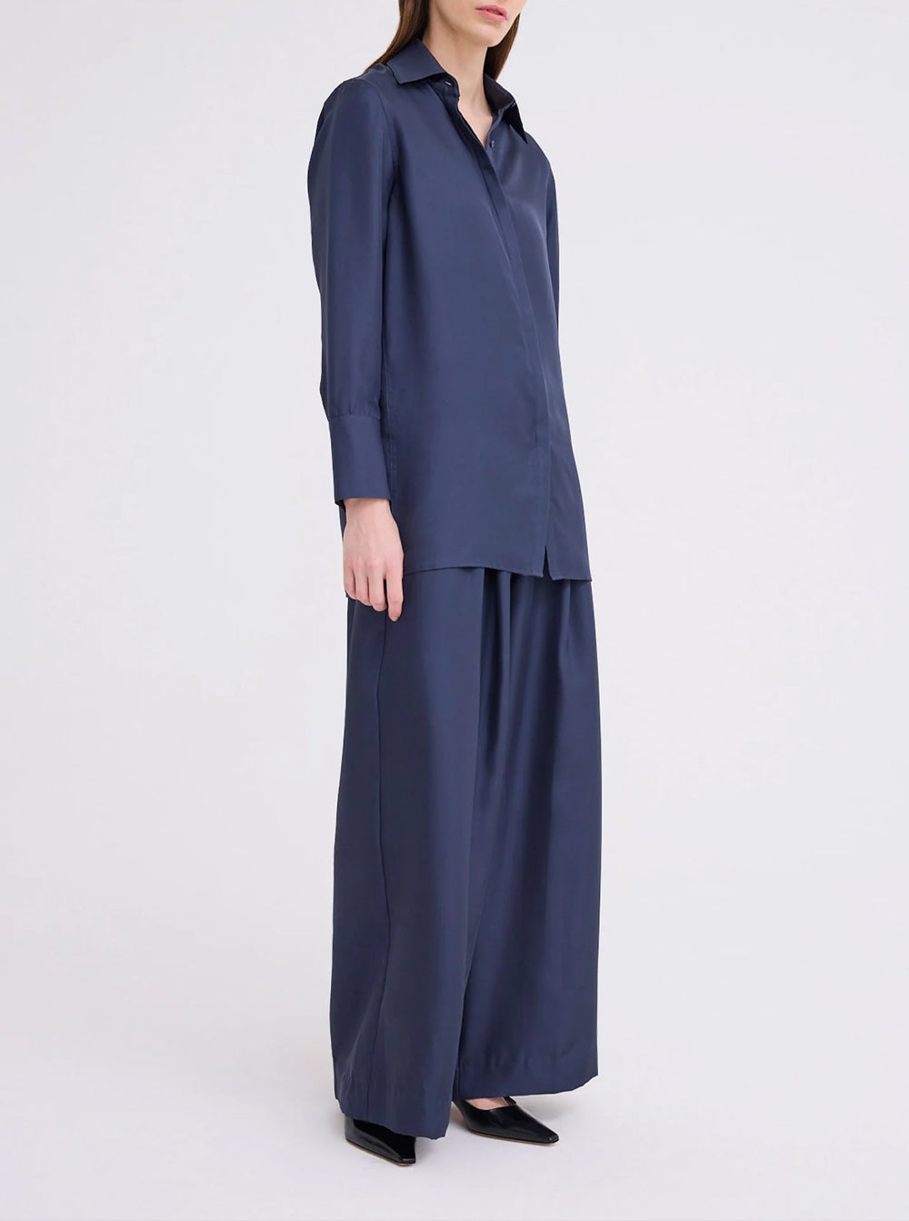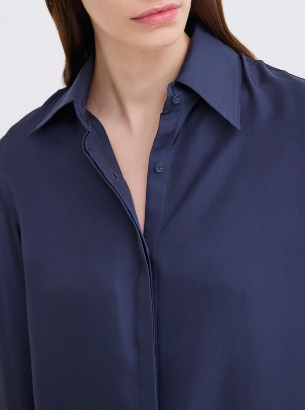 Cut from silk twill with a soft lustre, this womens silk shirt balances the natural drape of a fluid fabrication.