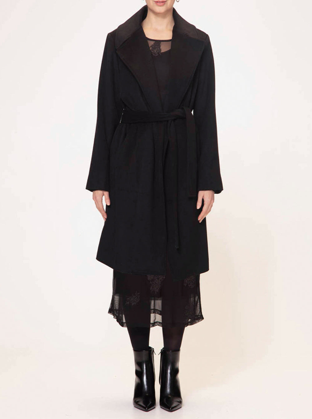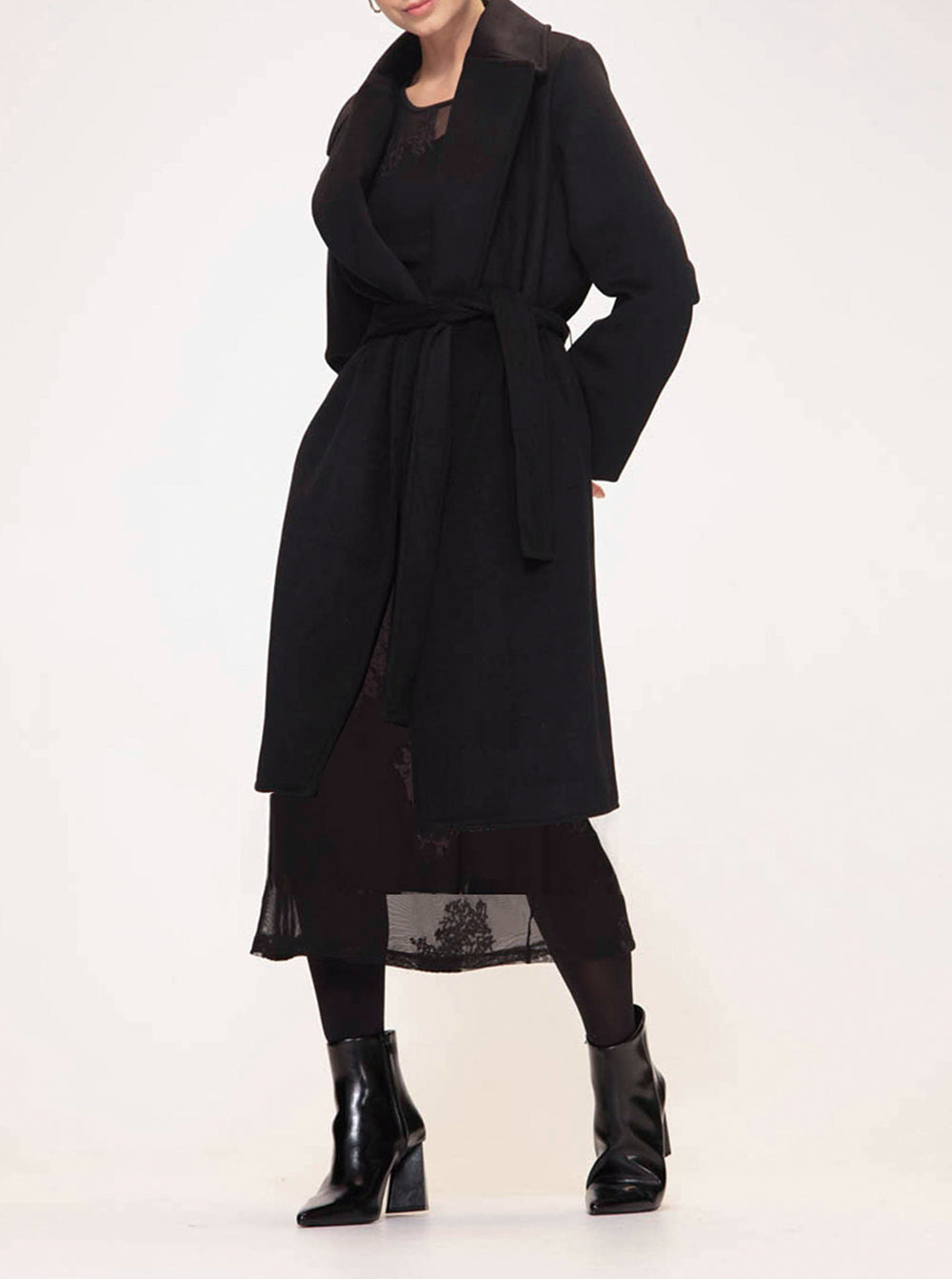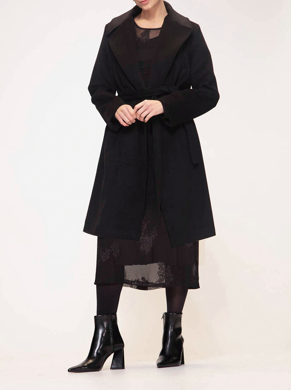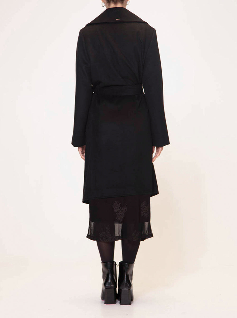 The Foxtail coat has a removable tie belt and can be worn tied at the front or back.