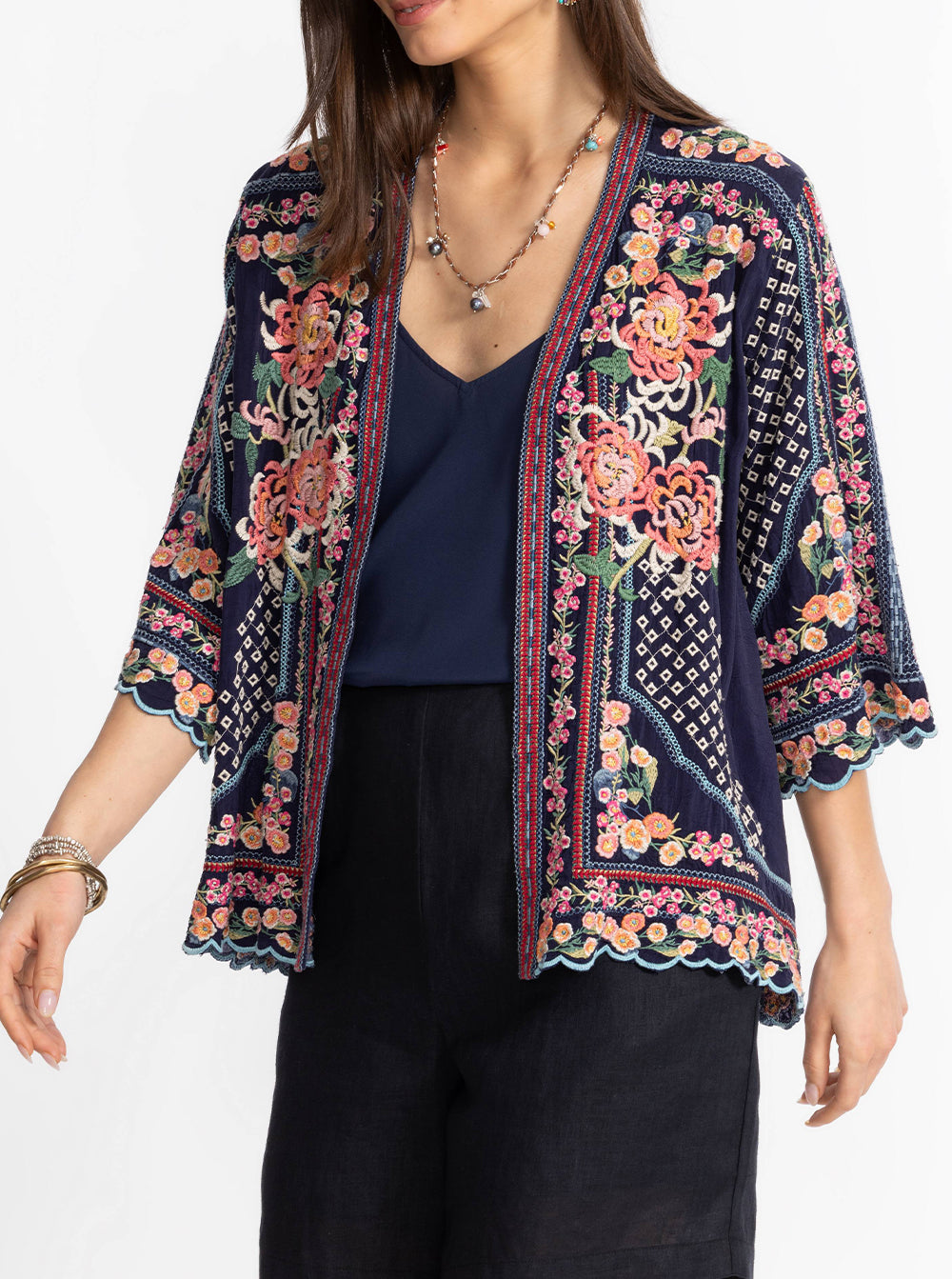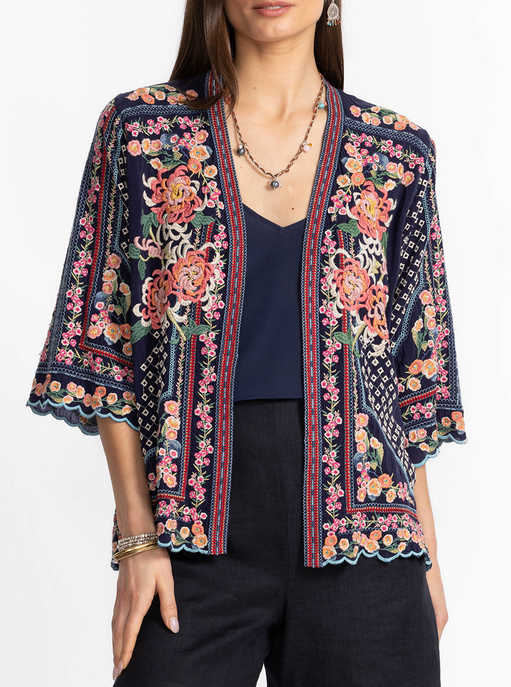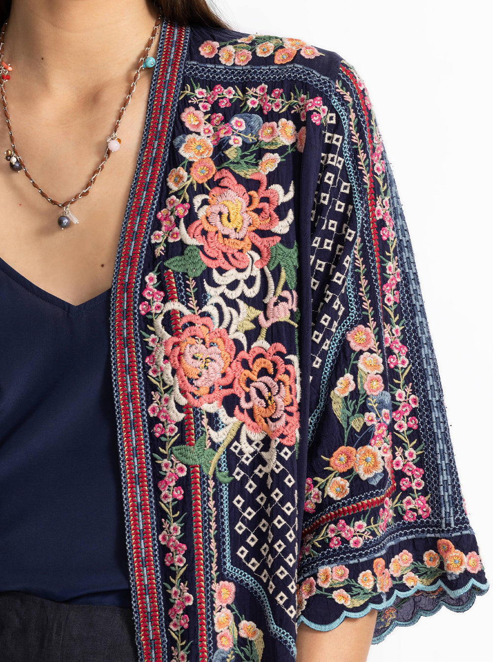 Intricately embellished with eye-catching embroidered details, the Fuji Kimono adds a hint of elegance to any look.