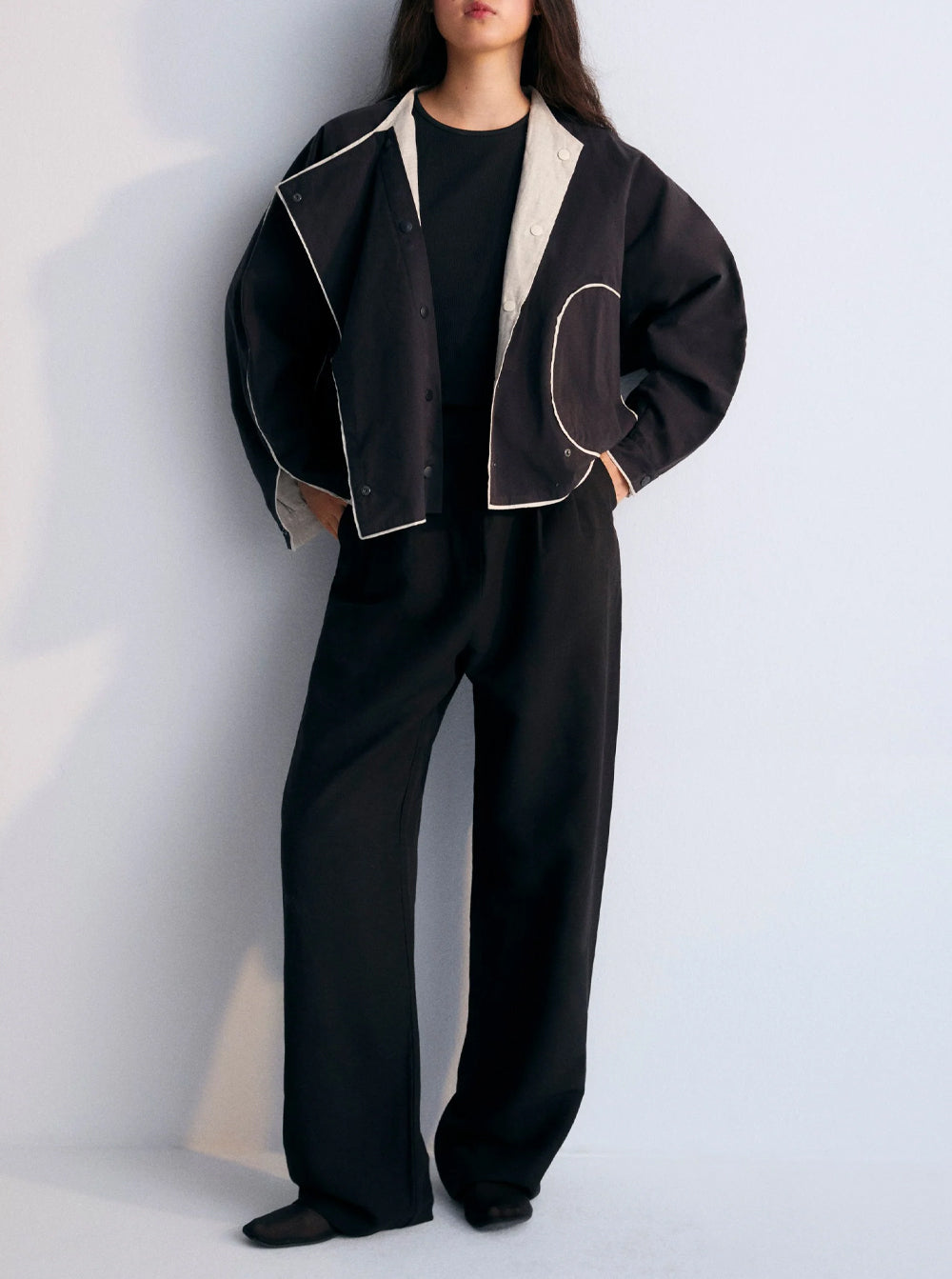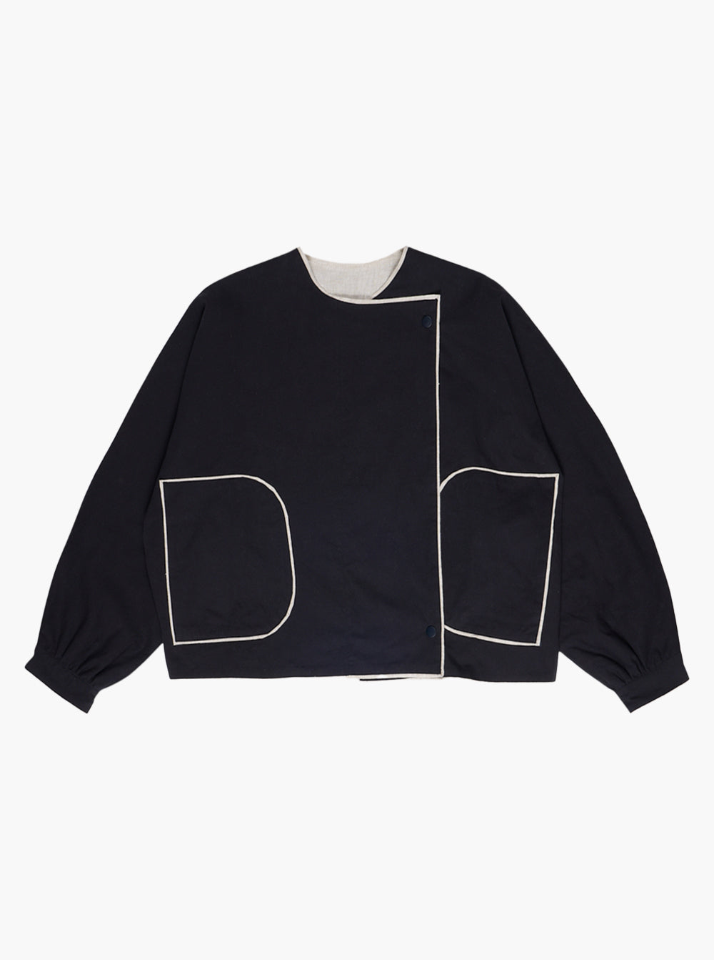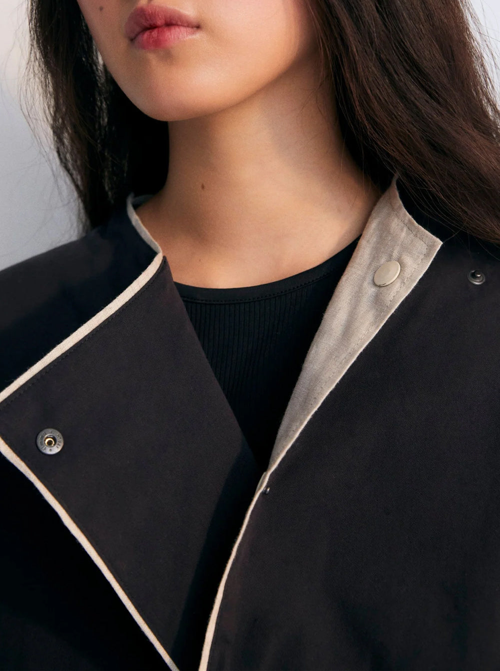 This reversible jacket offers two looks in one, giving you the freedom to switch between its beautiful natural linen exterior and the chic interior in linen vigoré. Designed with side pockets, a central opening, and a wide lapel, it’s both functional and sophisticated.
