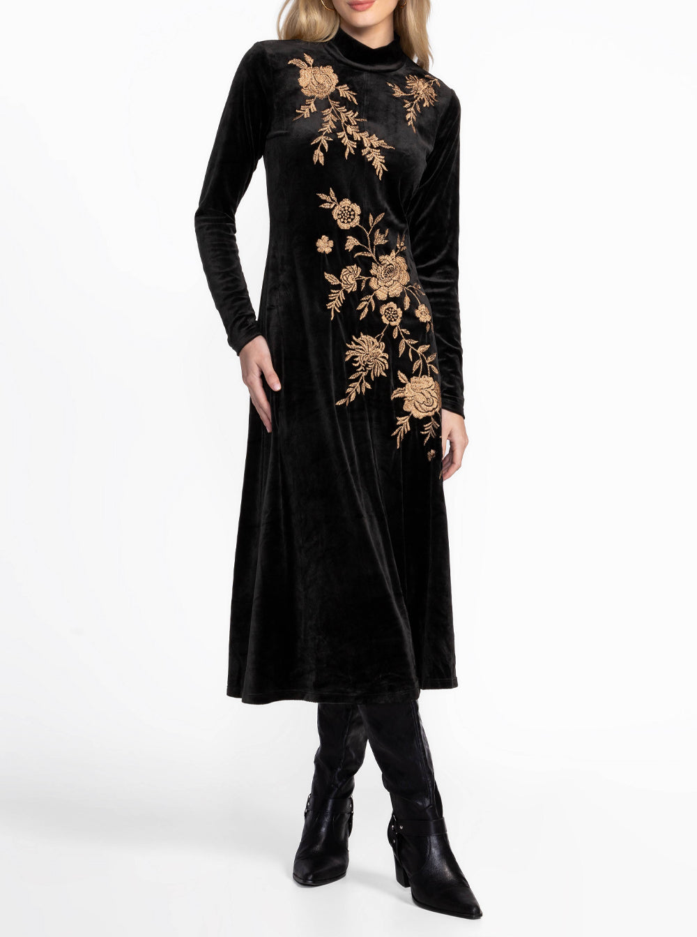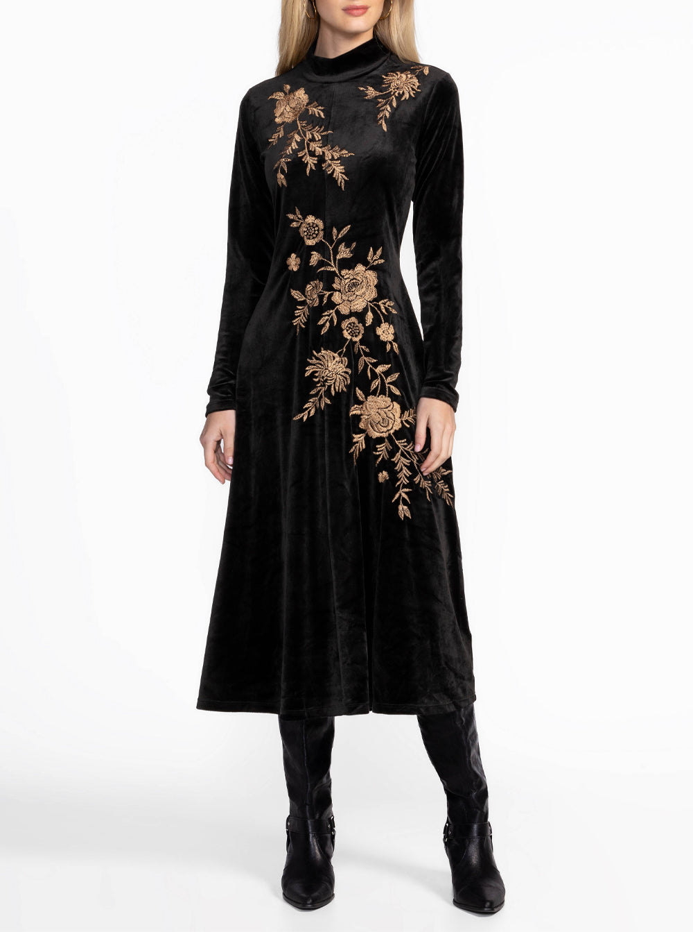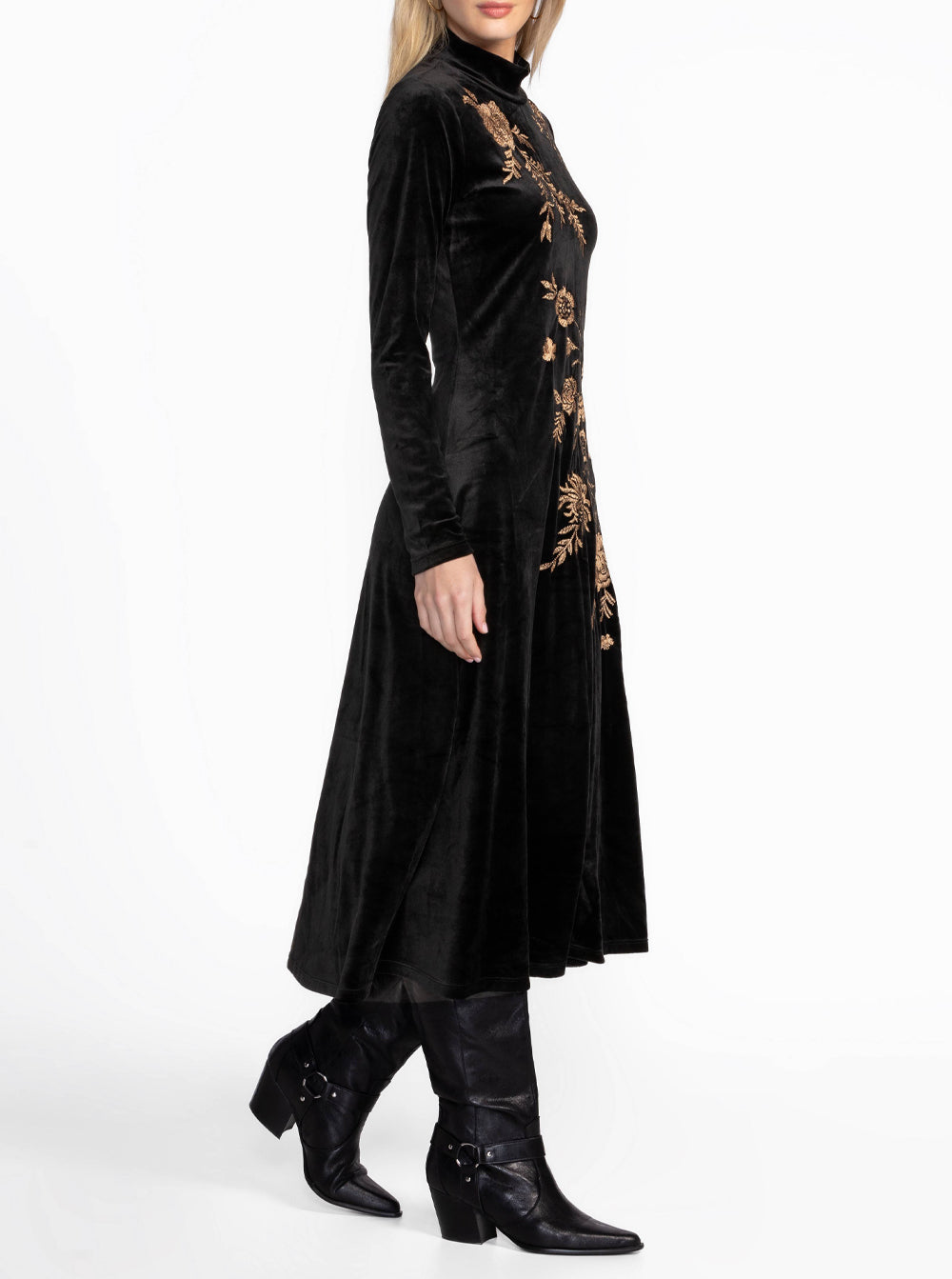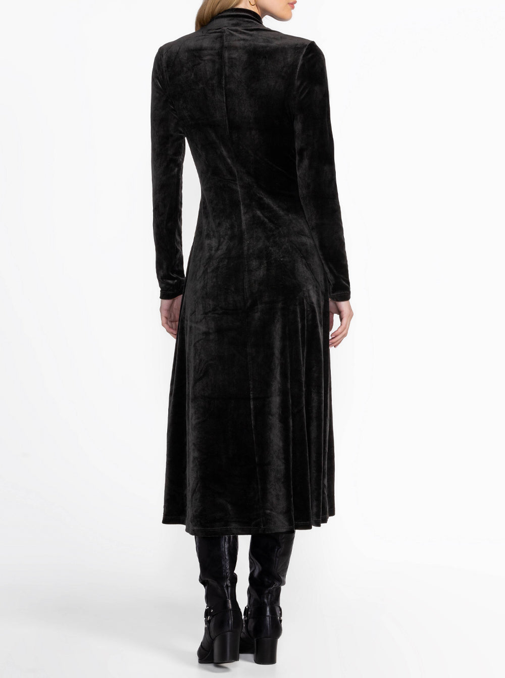 Stretch Velvet Mock Neck Dress - Black