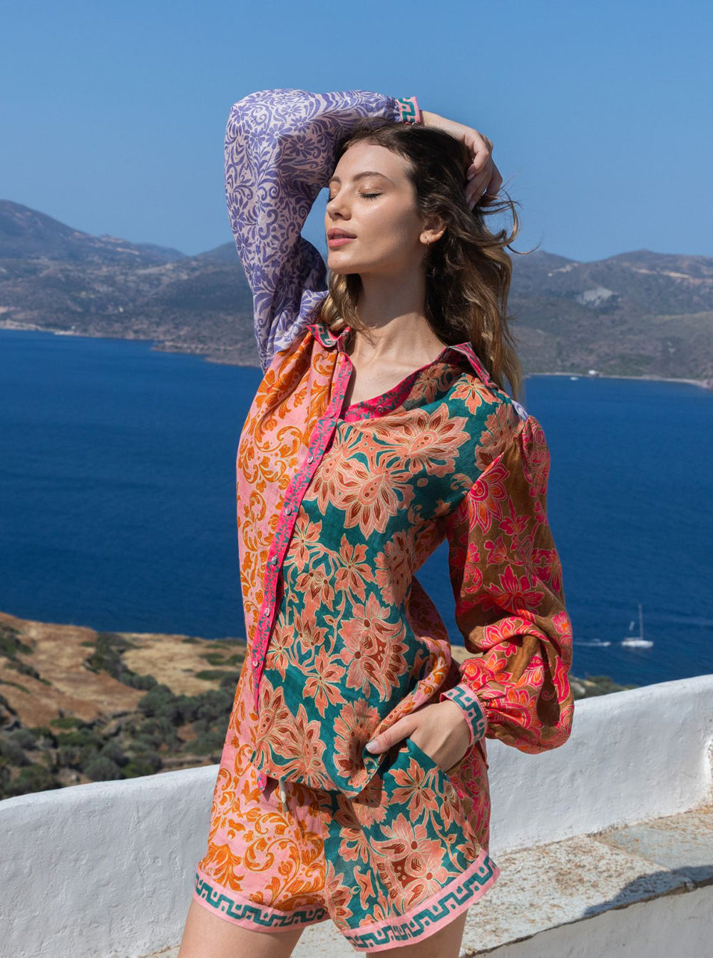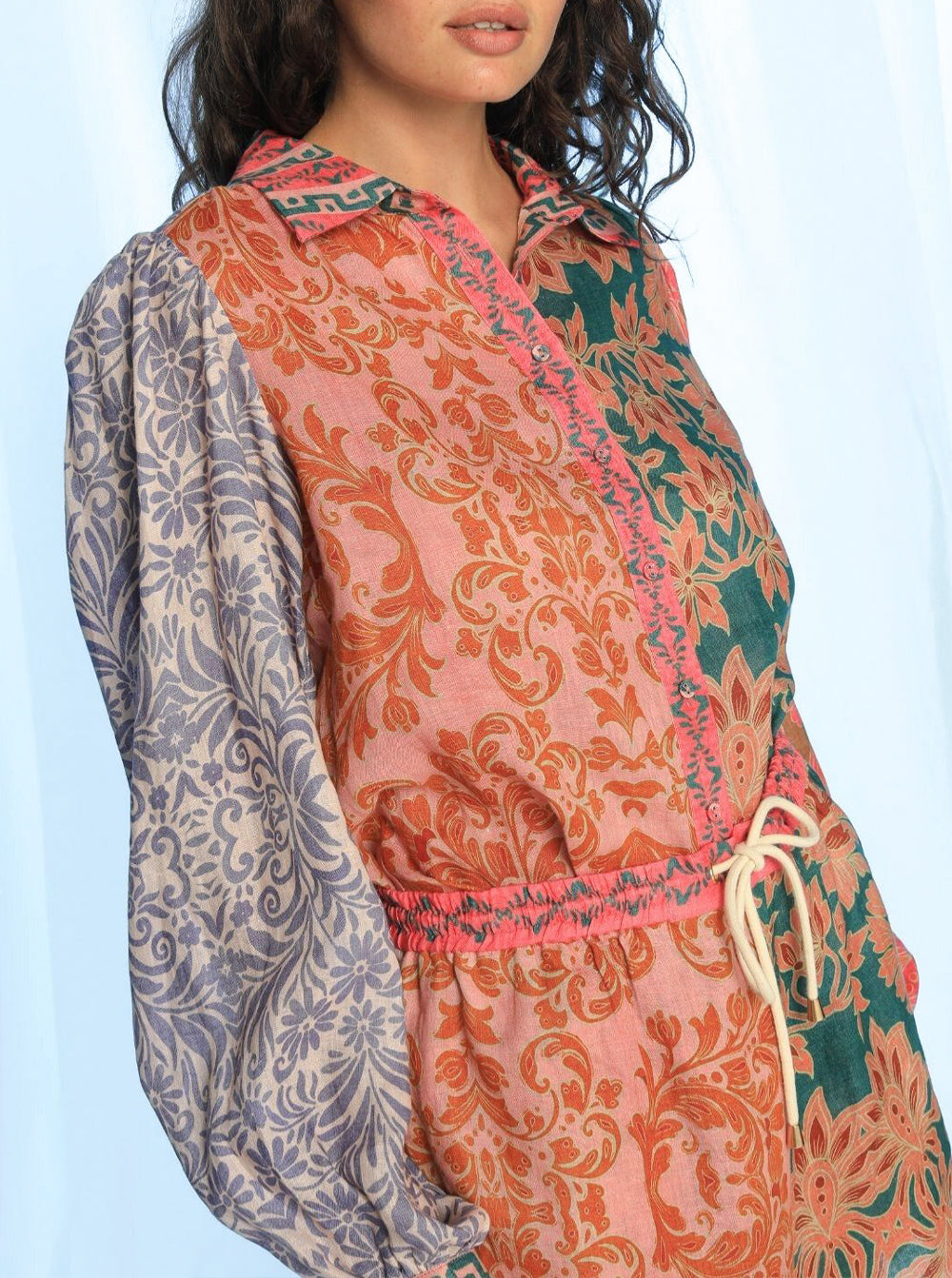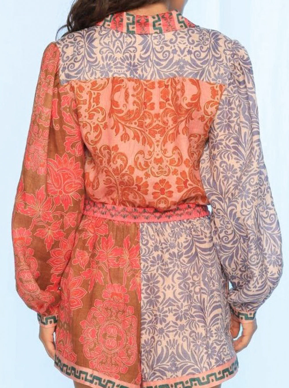 The Sammy Blouse by Kachel adds a pop of print and polish to your wardrobe with its bold, boho-inspired charm.