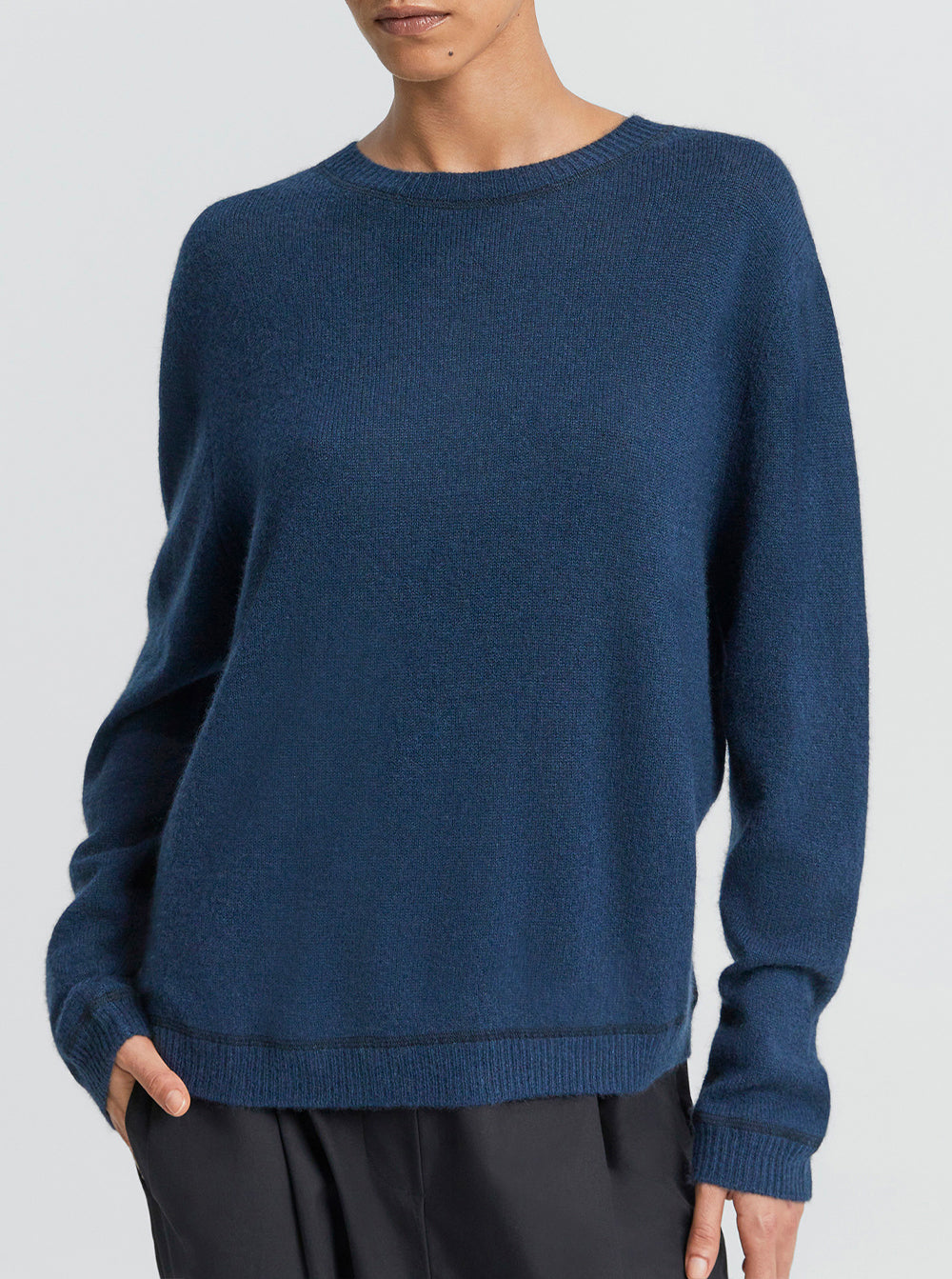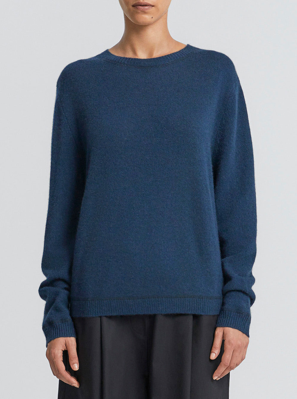 Made from luxuriously soft cashmere, it's designed to be worn on its own or layered with ease. Featuring a fine crew neckline and a relaxed silhouette that falls at the hip, this versatile piece blends comfort with understated elegance.