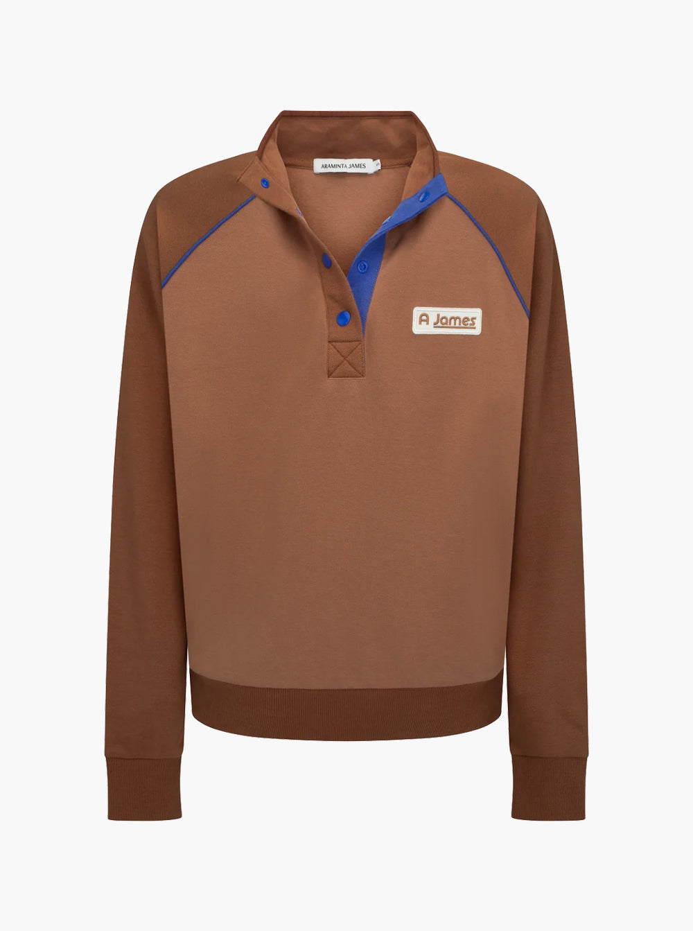 Thoughtfully crafted in a luxurious and soft cotton knit fabrication. This sweater features a snap button placket, contrast raglan sleeves and embroidered patch on the front.