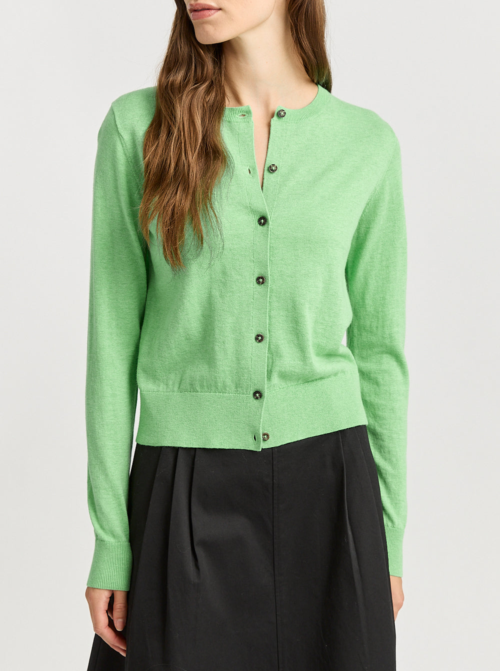The Fine Crew Cardigan has a slim silhouette and button-down front made from lightweight Merino-cotton.