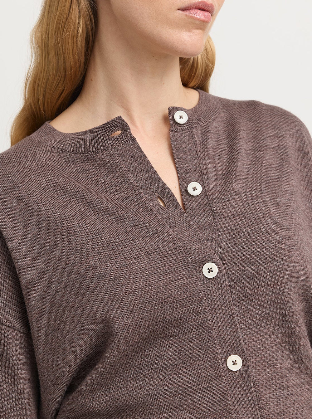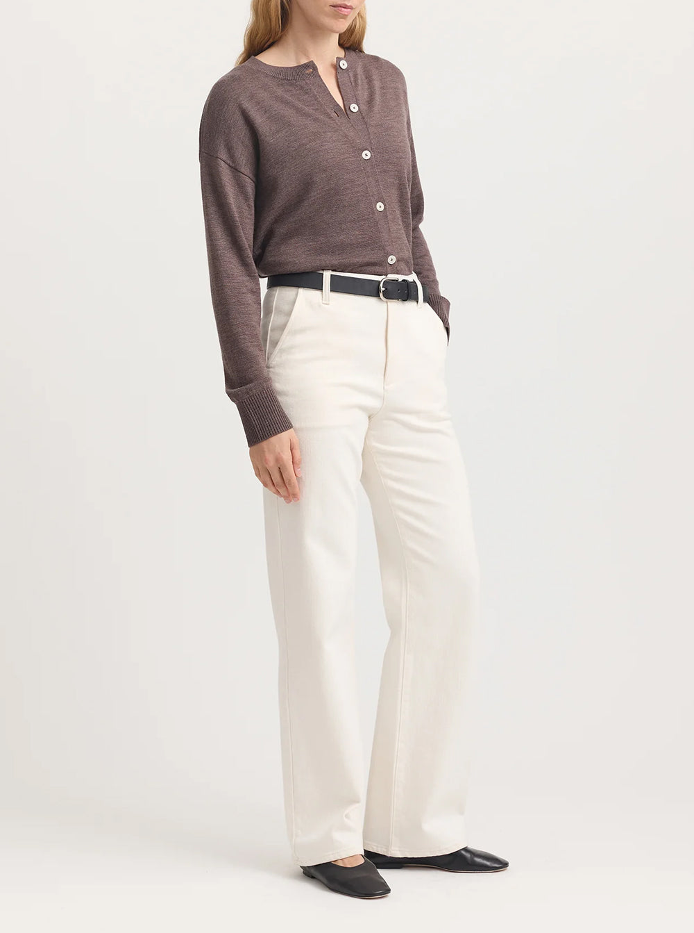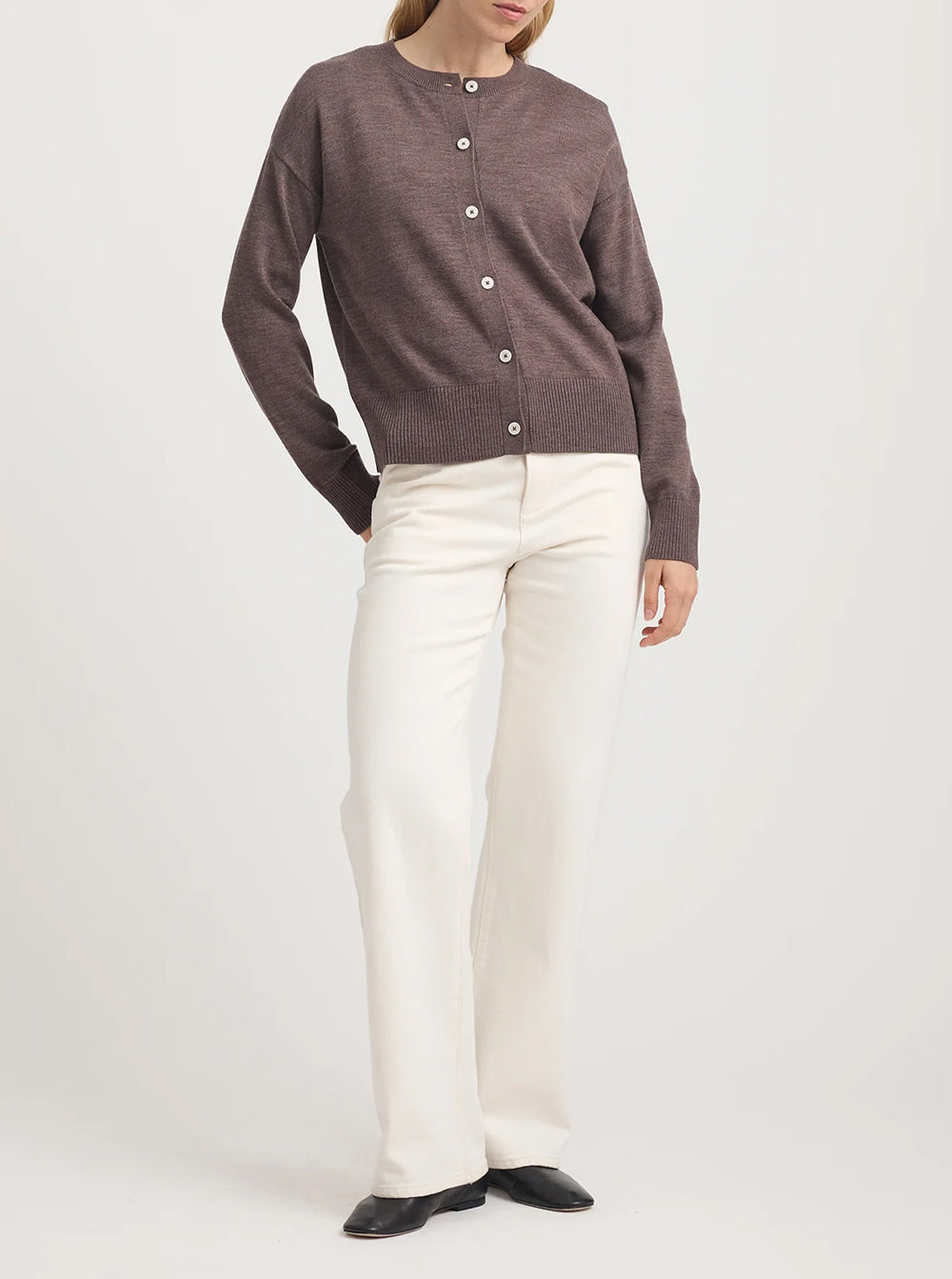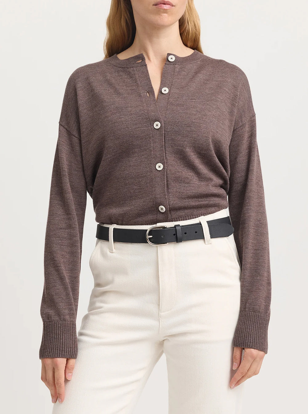 The Fine Knit Cardigan is a classic wardrobe staple made of lightweight Australian Merino Wool.