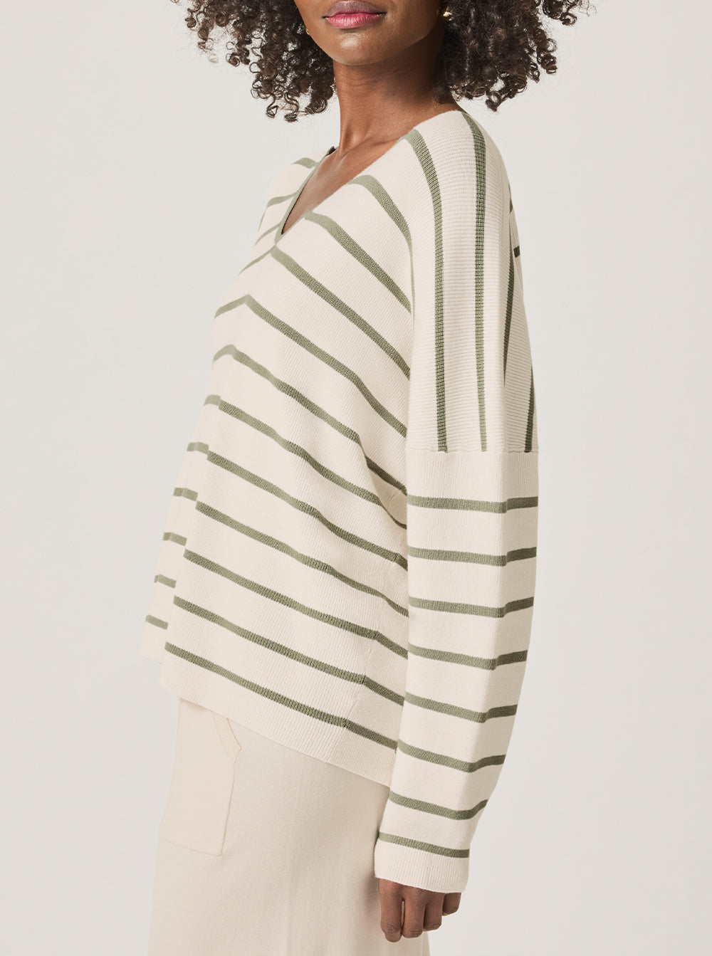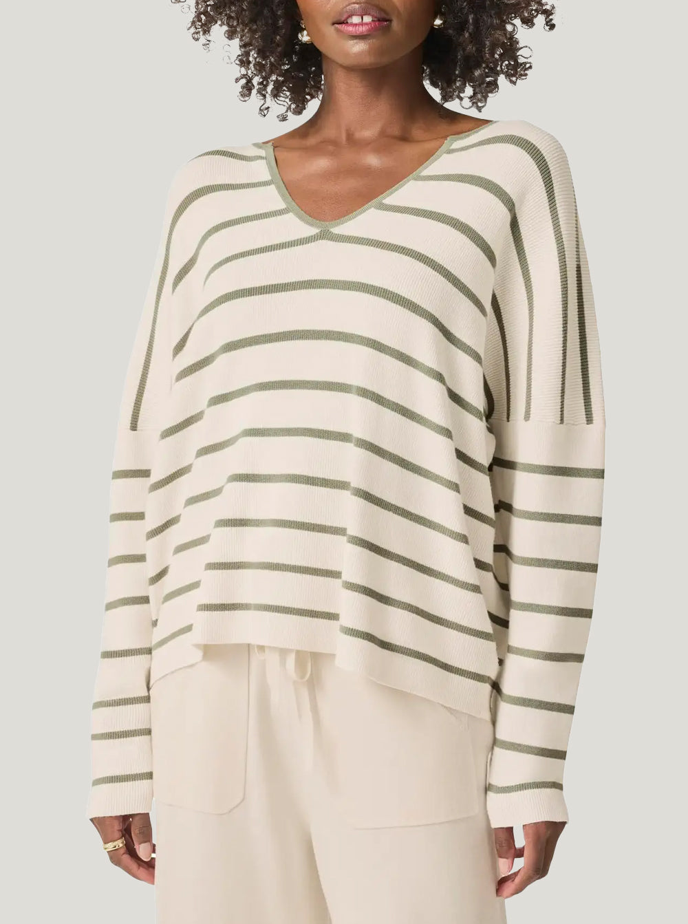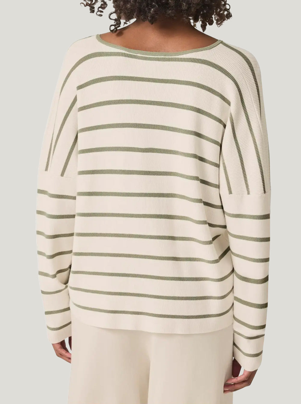 Veronica Striped Sweater - Moonstone/Soft Vintage Olive Branch