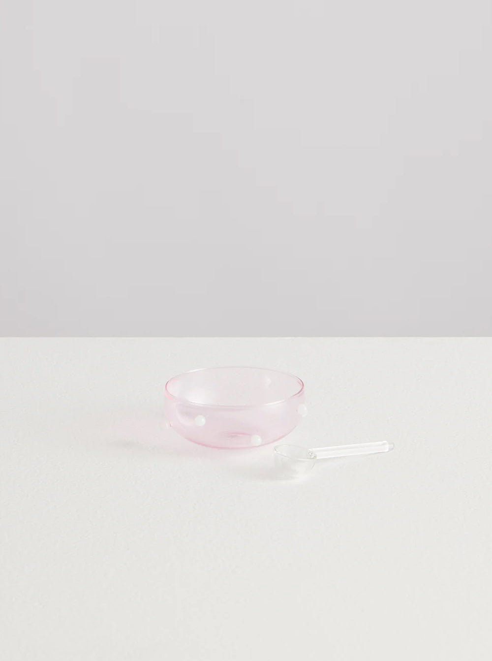 Maison Balzac's solution is this small pink saucer and clear spoon set, made of borosilicate glass colourfully dressed up with the brand's signature pomponette dots. But don't be limited by the name! It will be just as happy to hold your olive oil, salt or secret seasonings.