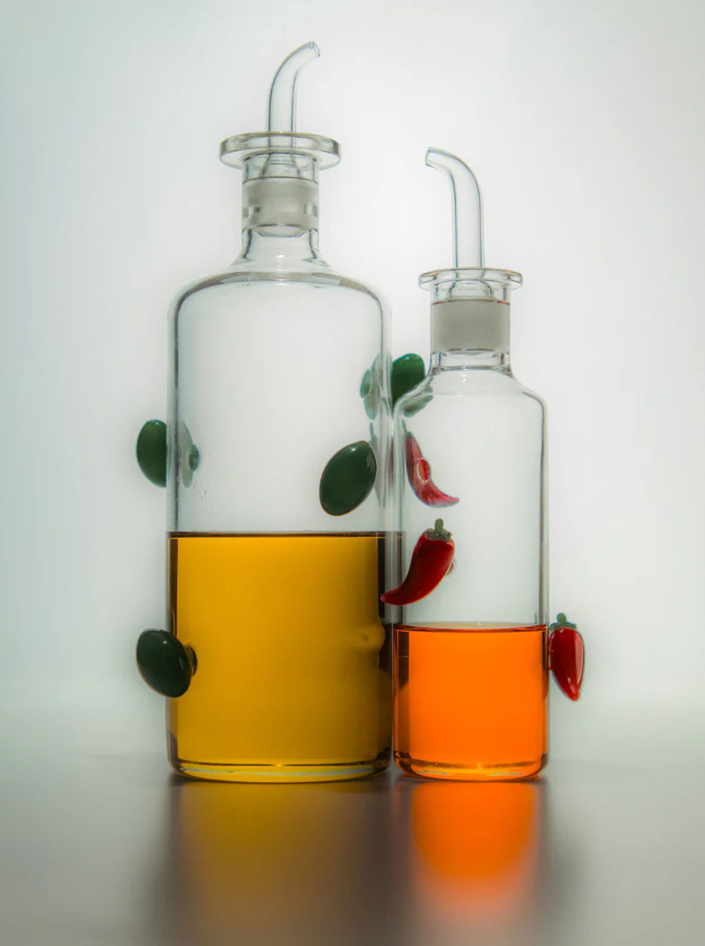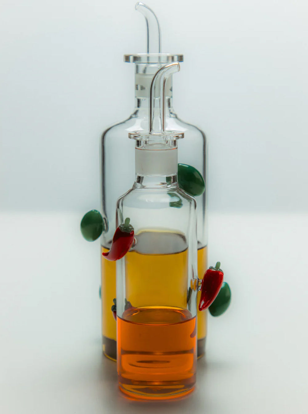 Spice up your culinary ritual with this playful glass bottle, expertly designed to dispense your favourite chilli oil in the most elegant way.