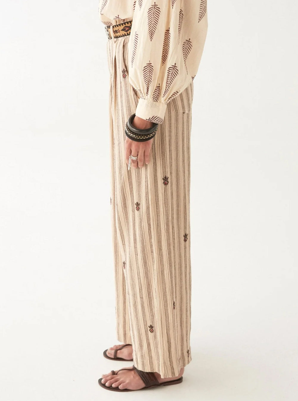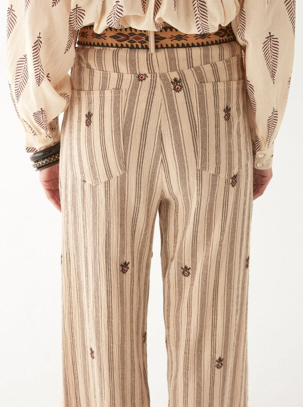 The desert’s earthy palette—faded browns, sun-bleached reds—is mirrored in every thread of these pants, from the deep, weathered hues to the intricate floral embroidery. Each stitch tells a story of resilience, of time carved into the landscape, echoing the desert’s silent strength. Wear them, and you carry a piece of that raw, untamed beauty with you—ever evolving, but unbreakable.