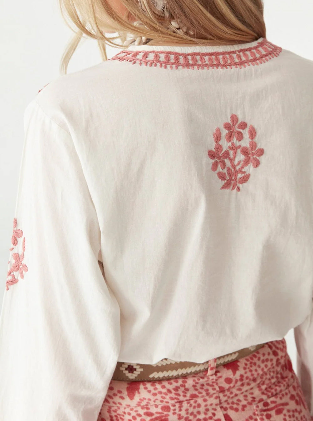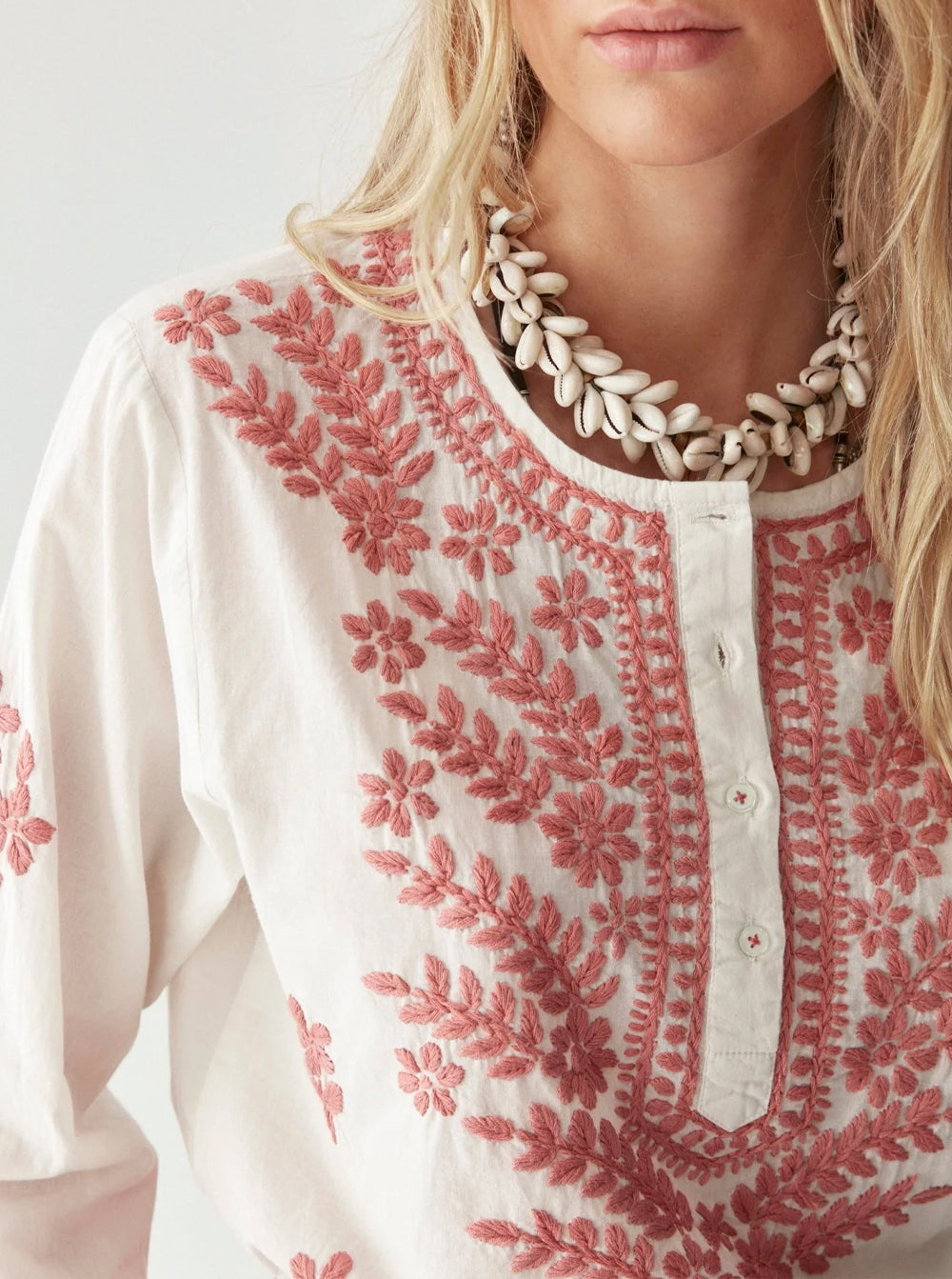 Soft, effortless, and stitched with stories—this is bohemian craftsmanship at its finest. An ode to heritage embroidery, the Shyla Blouse features intricate Chikan-inspired floral details on airy cotton, making every thread feel like a whisper from the past.