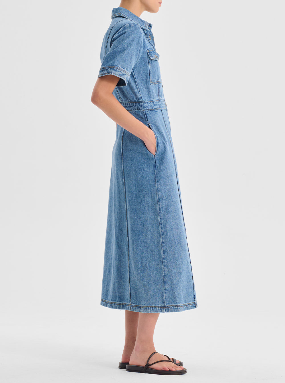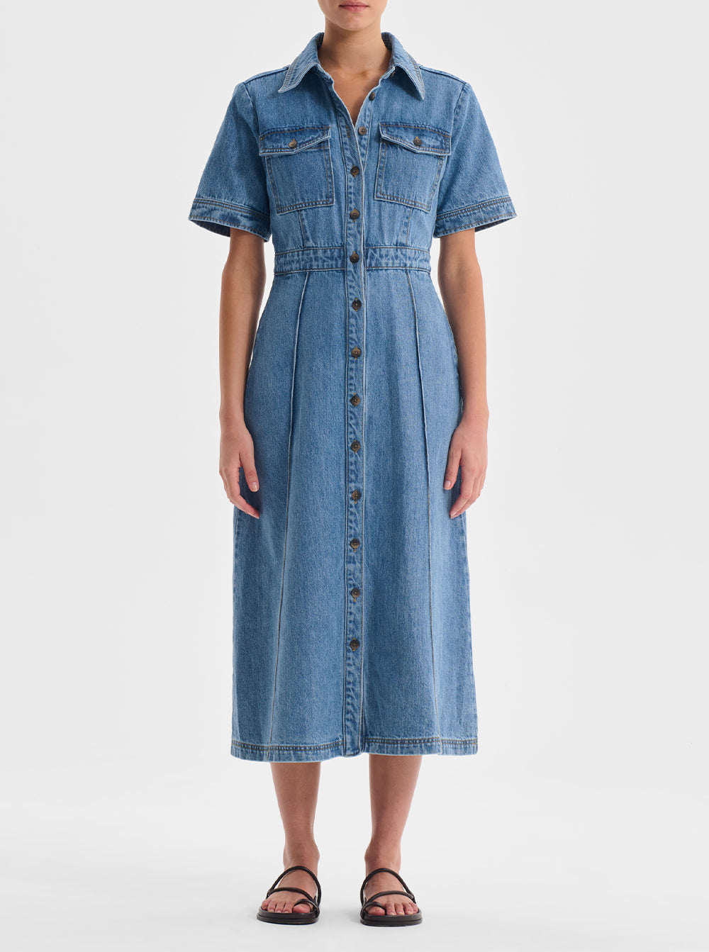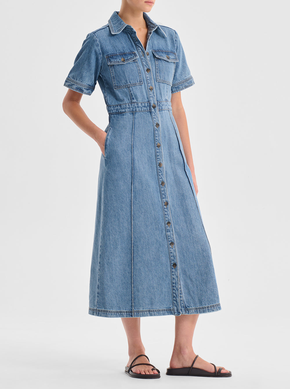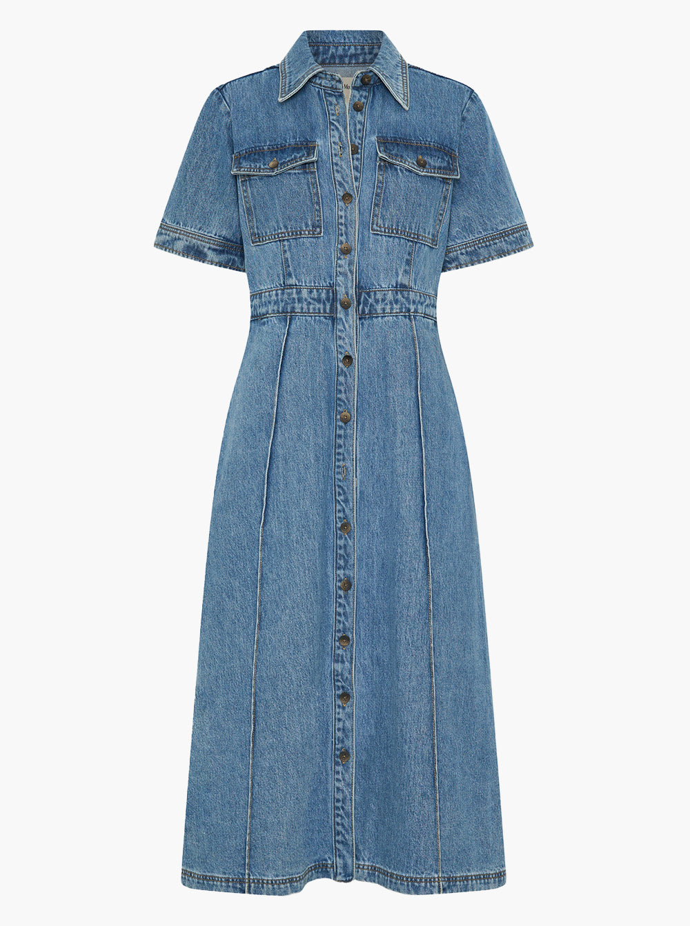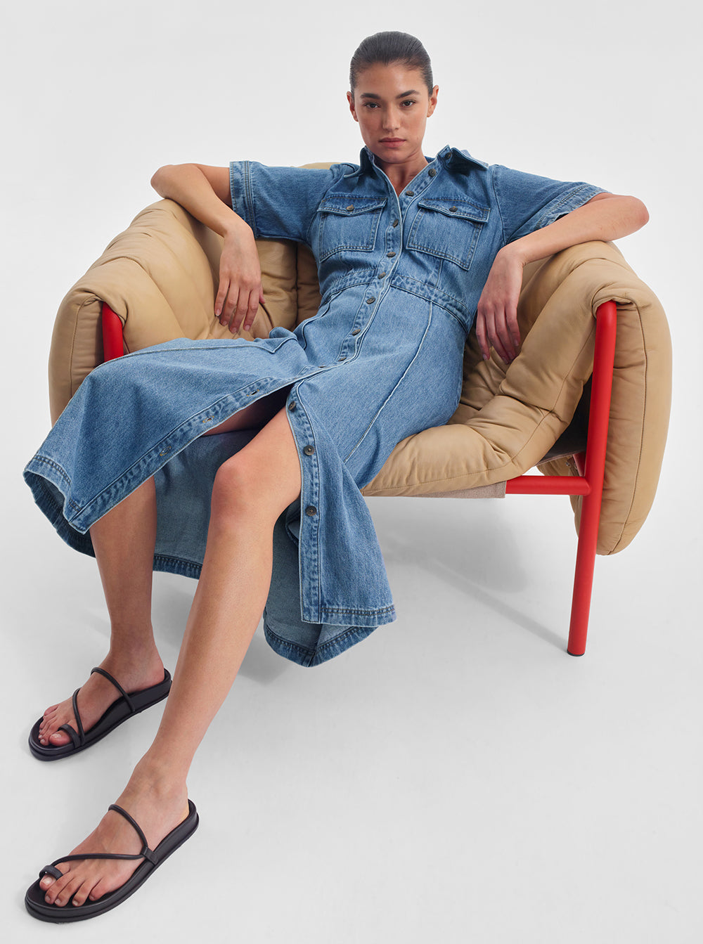 Tailored from mid-weight cotton denim, the Jacque Shirt Dress blends structure with ease.