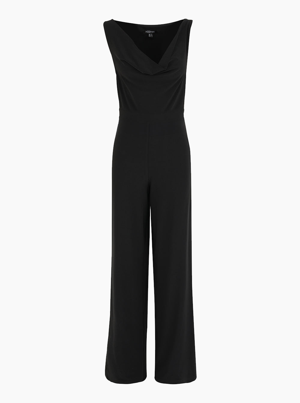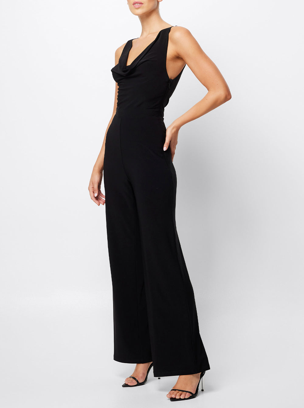 Highlighted by its deep cowl neckline, it has a flattering wide leg cut in soft matte jersey. This jumpsuit is a versatile staple piece for your closet.