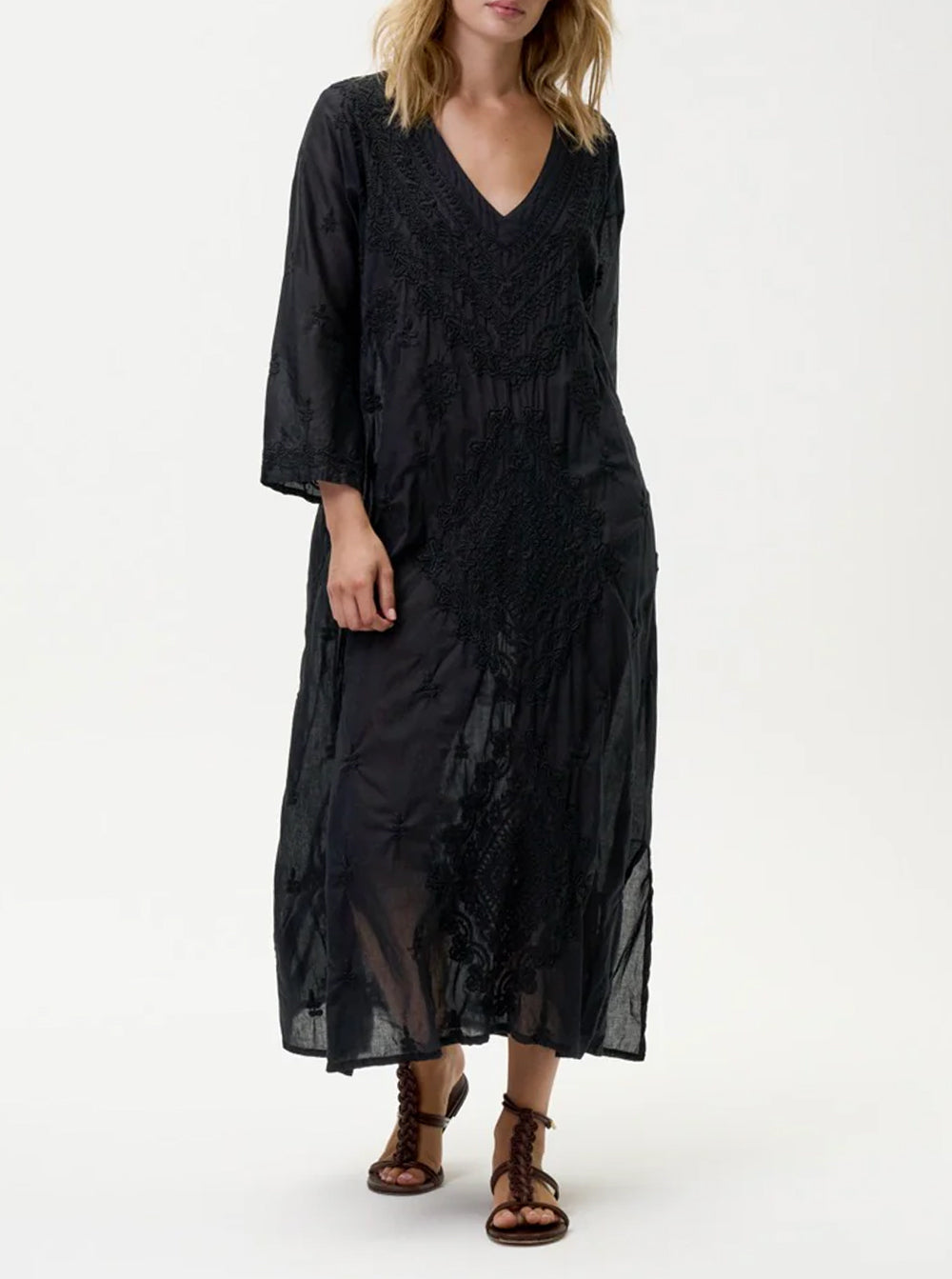 This contemporary take on the classic kaftan features a deep V-neckline and side splits for long walks or lounging.