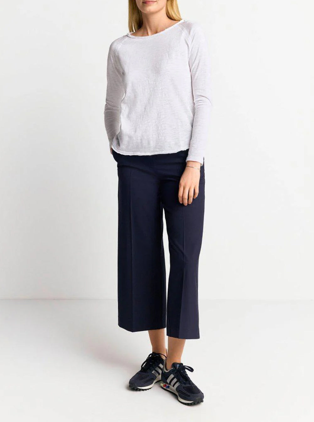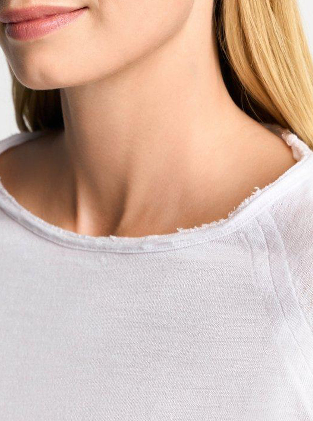 The raglan sleeves and wide round neckline also ensure this. Raw trim details add a relaxed touch.