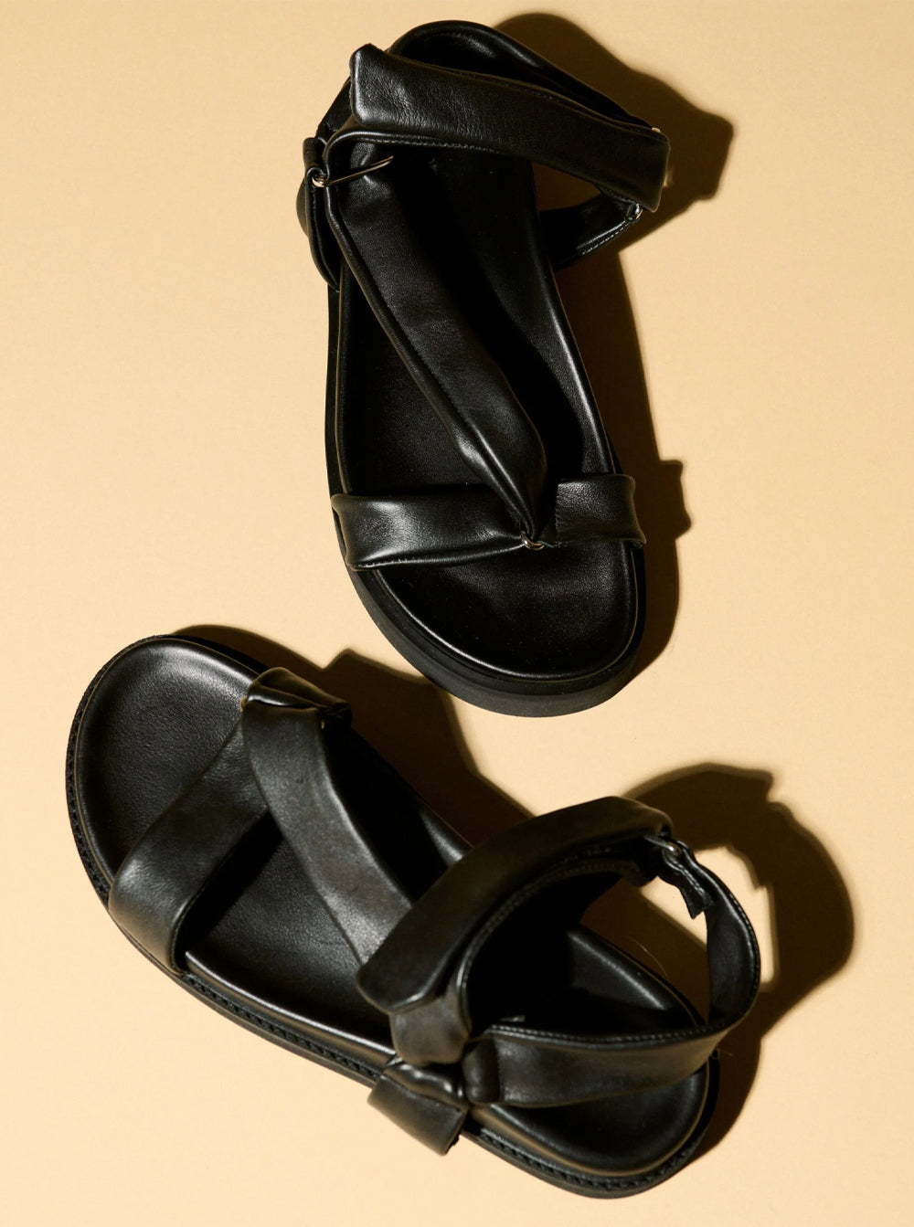 A classic everyday platform sandal. Cleo has a moulded footbed, cross-over strap design, and a velcro closure.