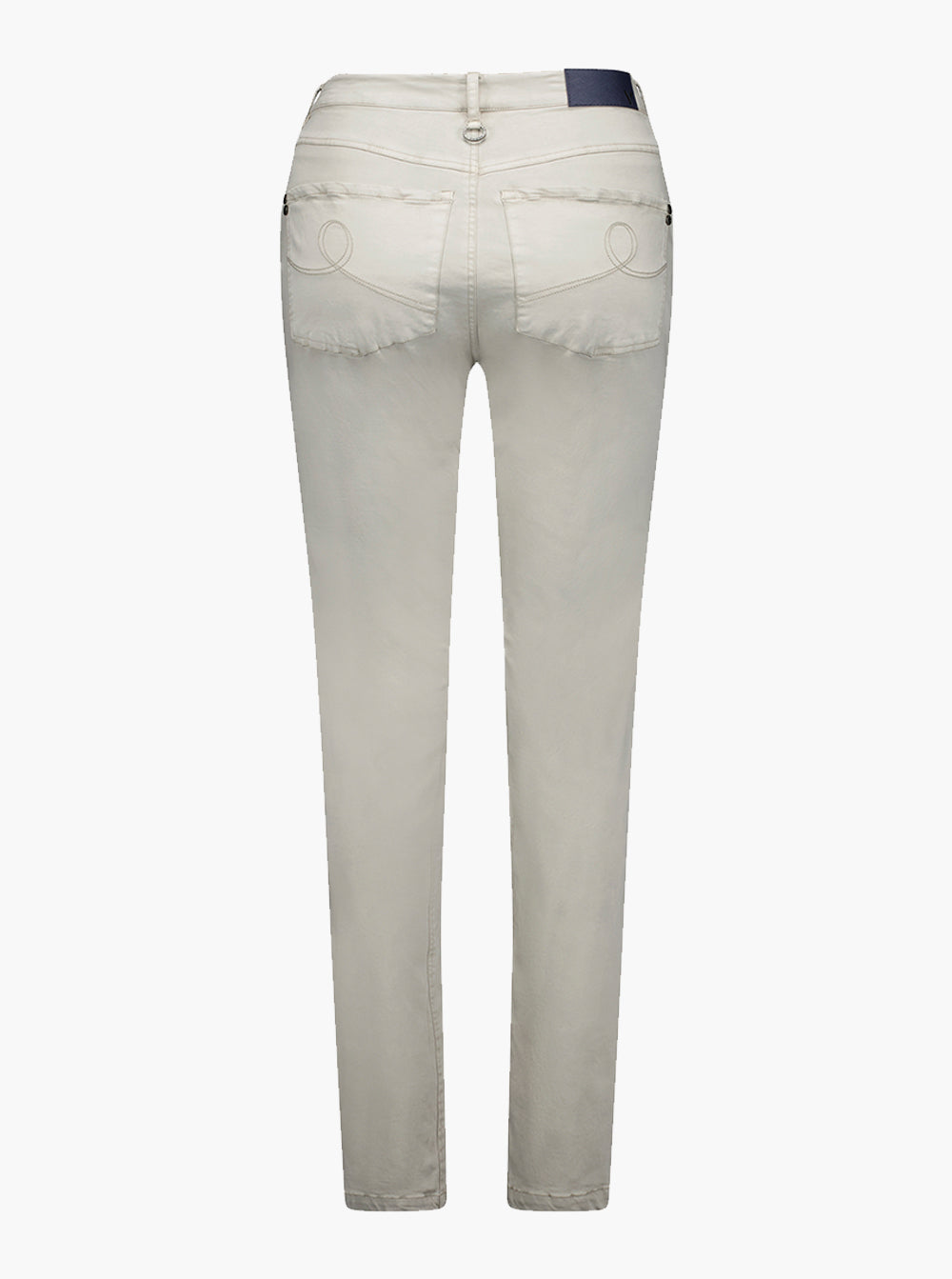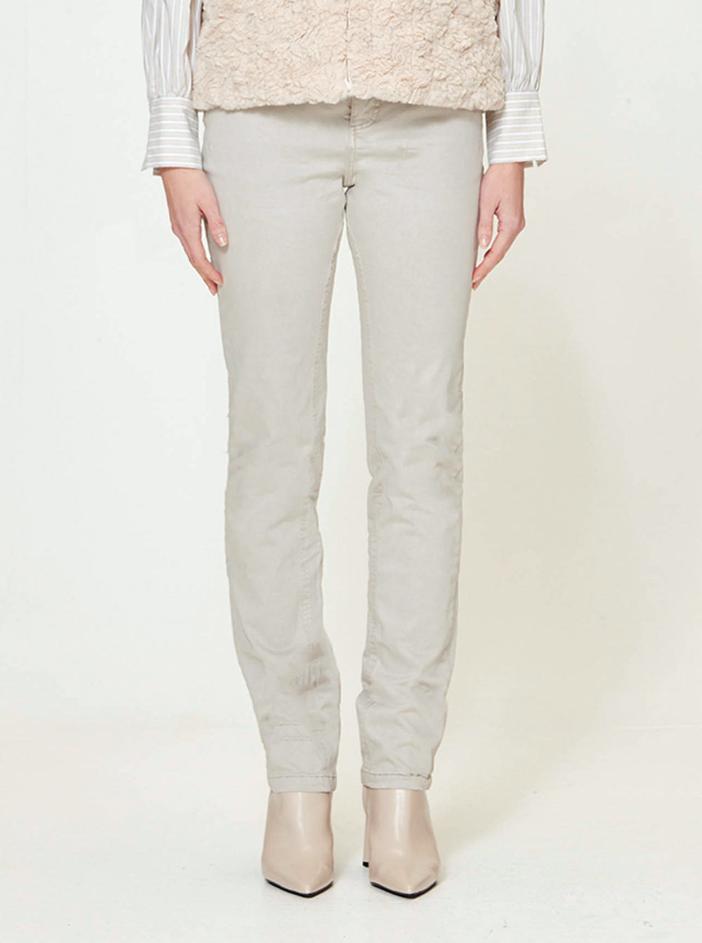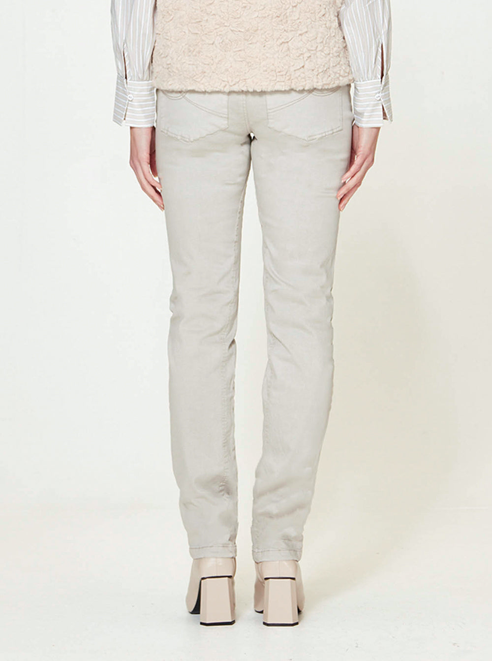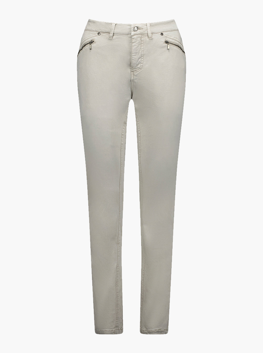 Full length slim moto style jeans with angled zip front pockets and inside panels on the legs.