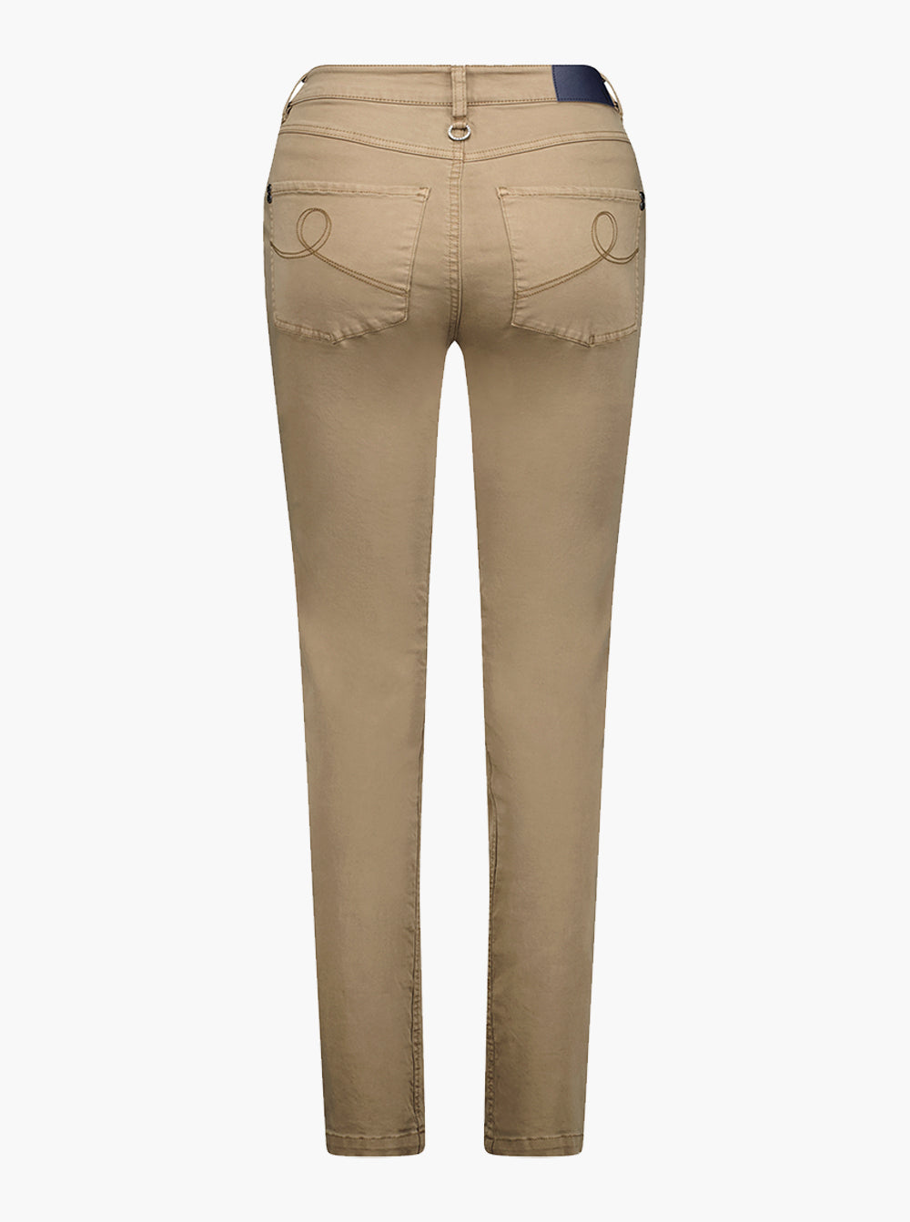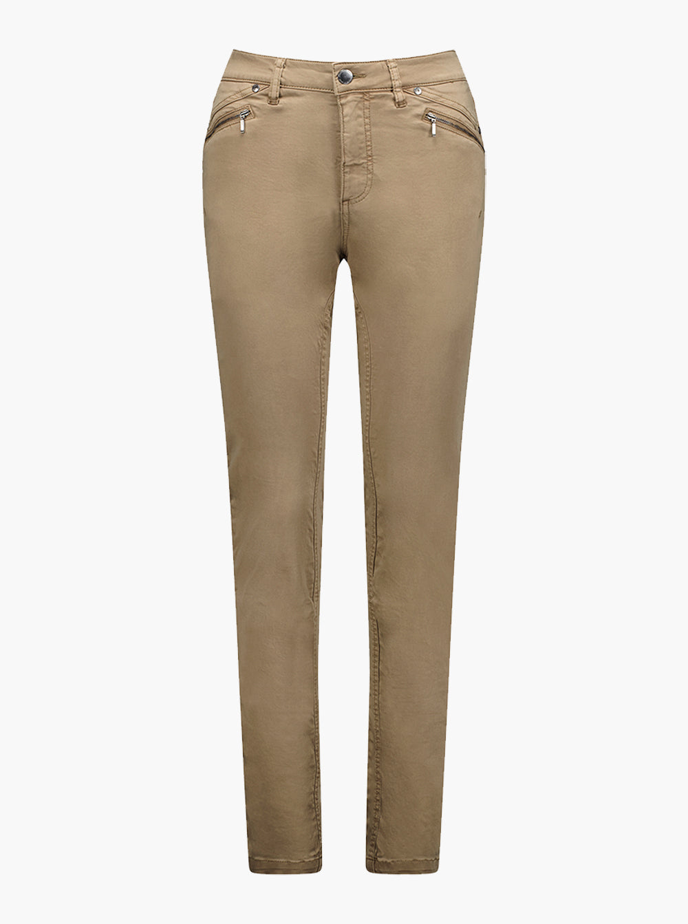 Full length slim moto style jeans with angled zip front pockets and inside panels on the legs.