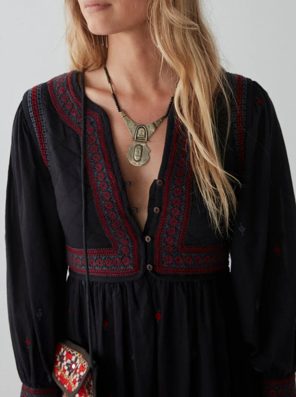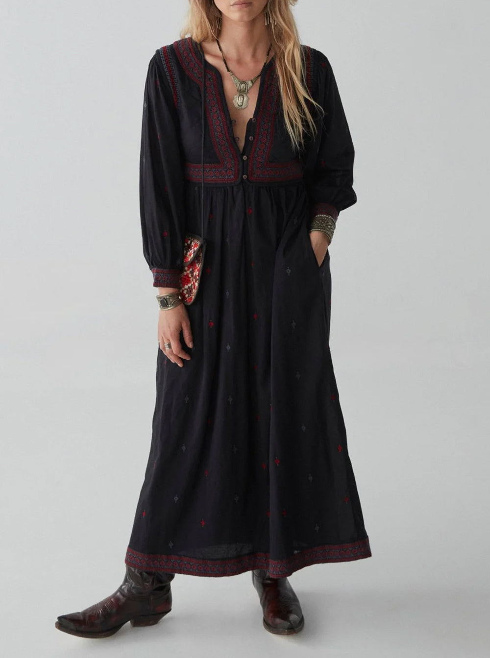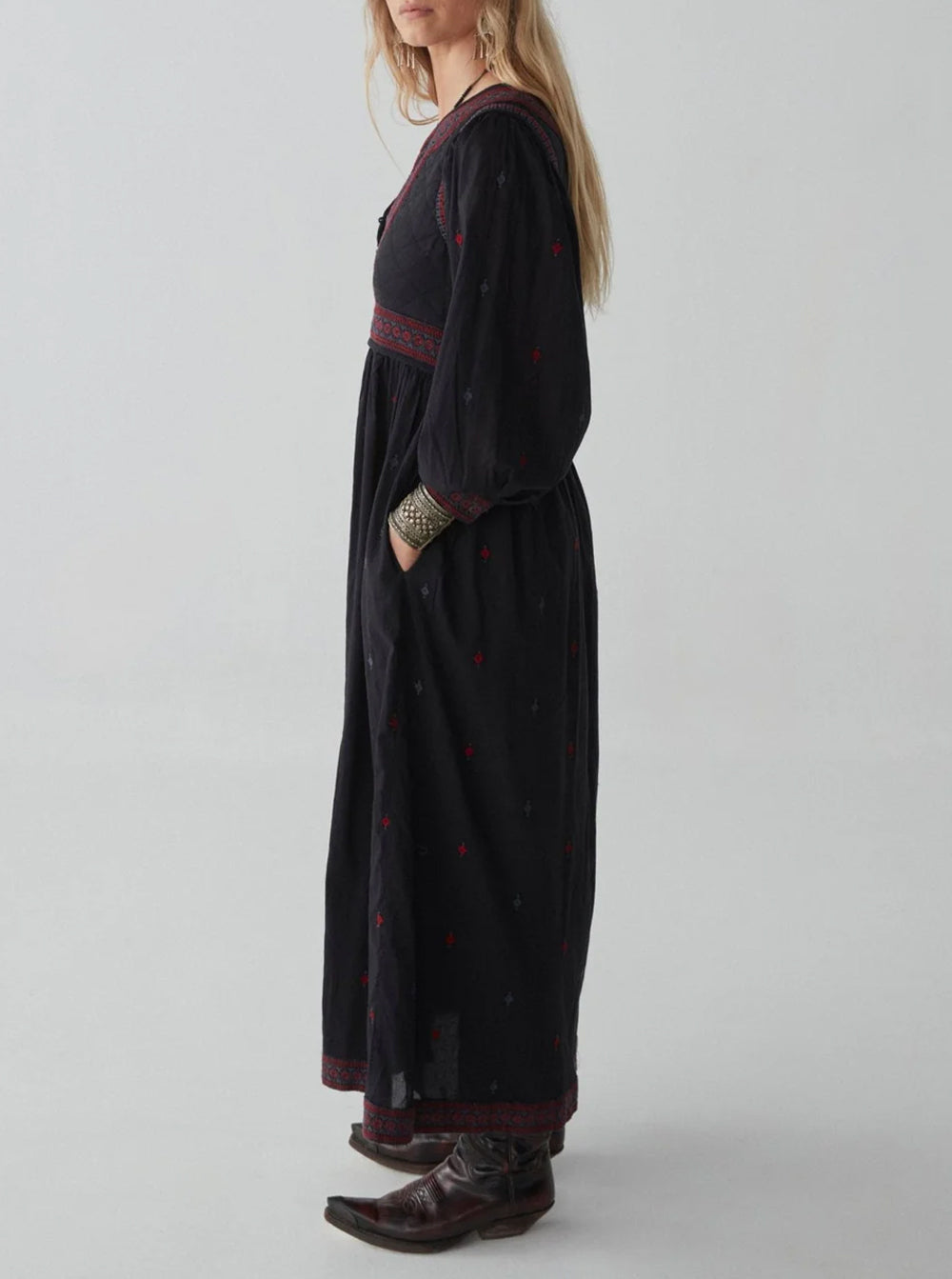 Regular price $259.00Dalida is soft yet resilient. It drapes effortlessly, cascading into a maxi length that sways with every step. Its intricate patterns weave tales of wanderlust and wild hearts.