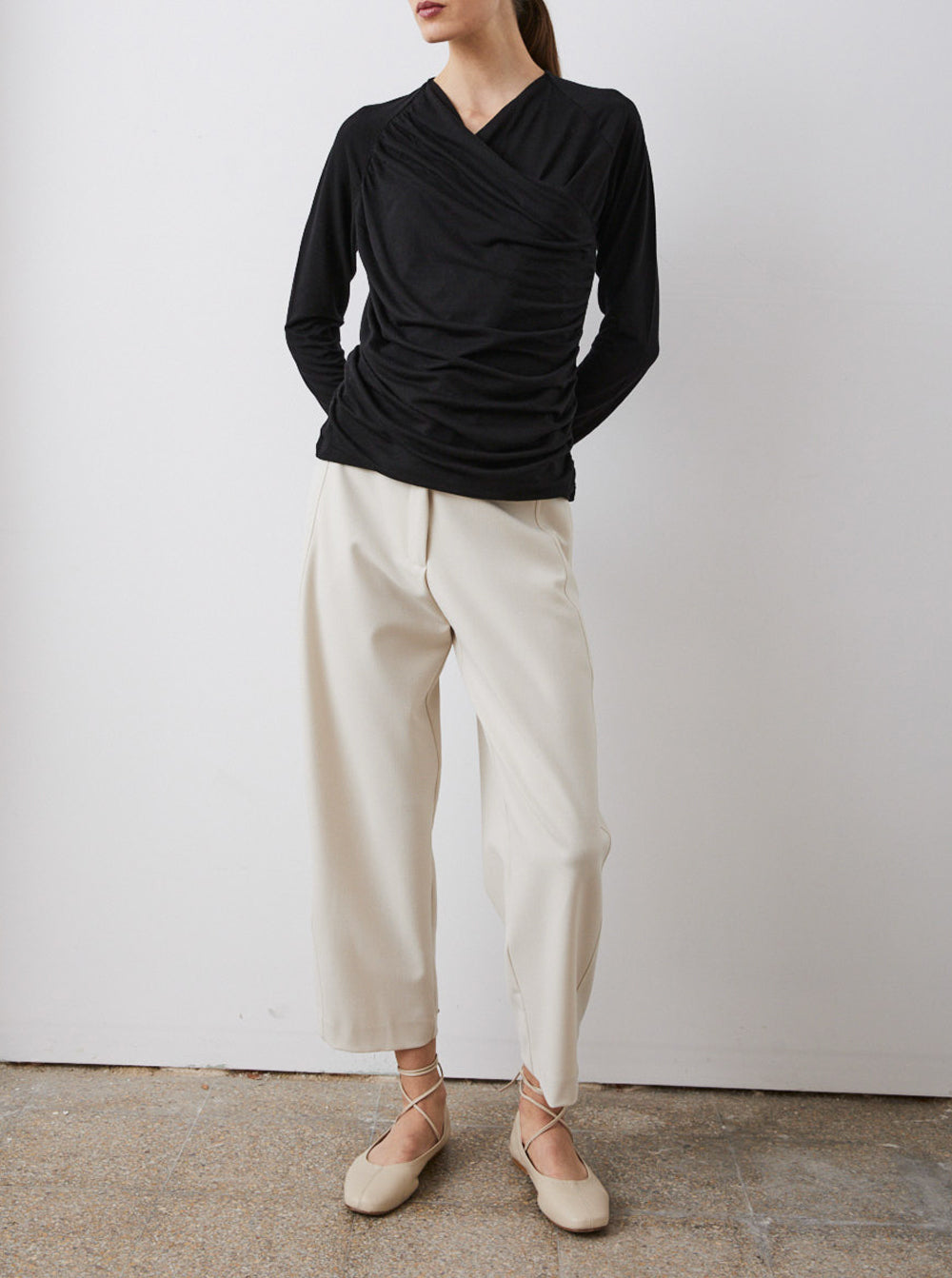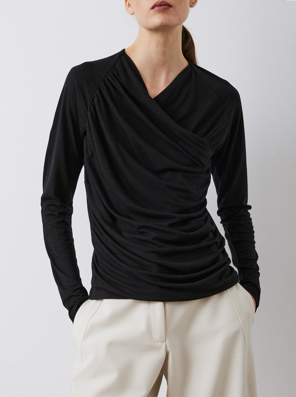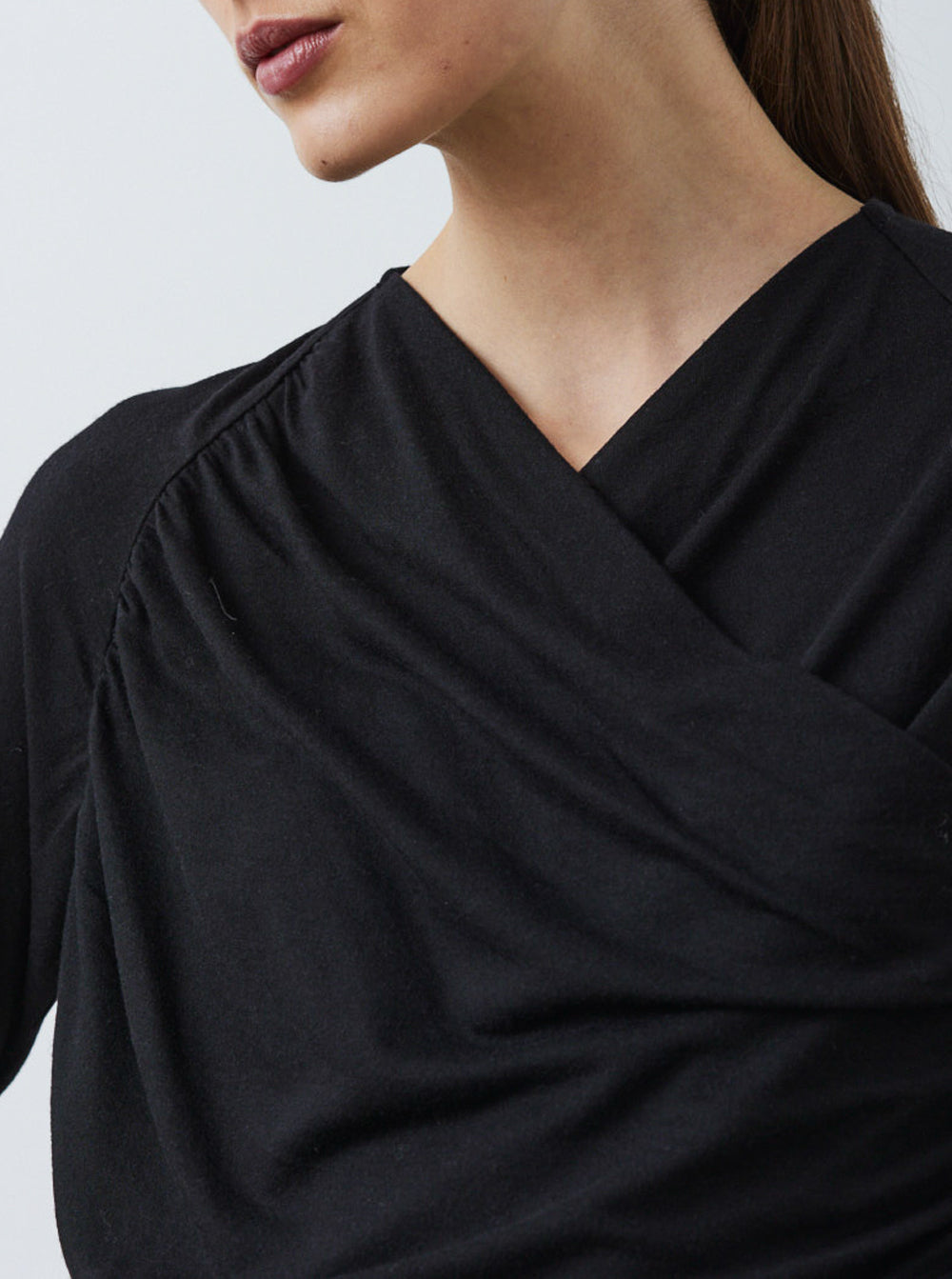 Black fitted cross t-shirt in a soft hand feel and warm thin jersey fabric of wool-lyocell.