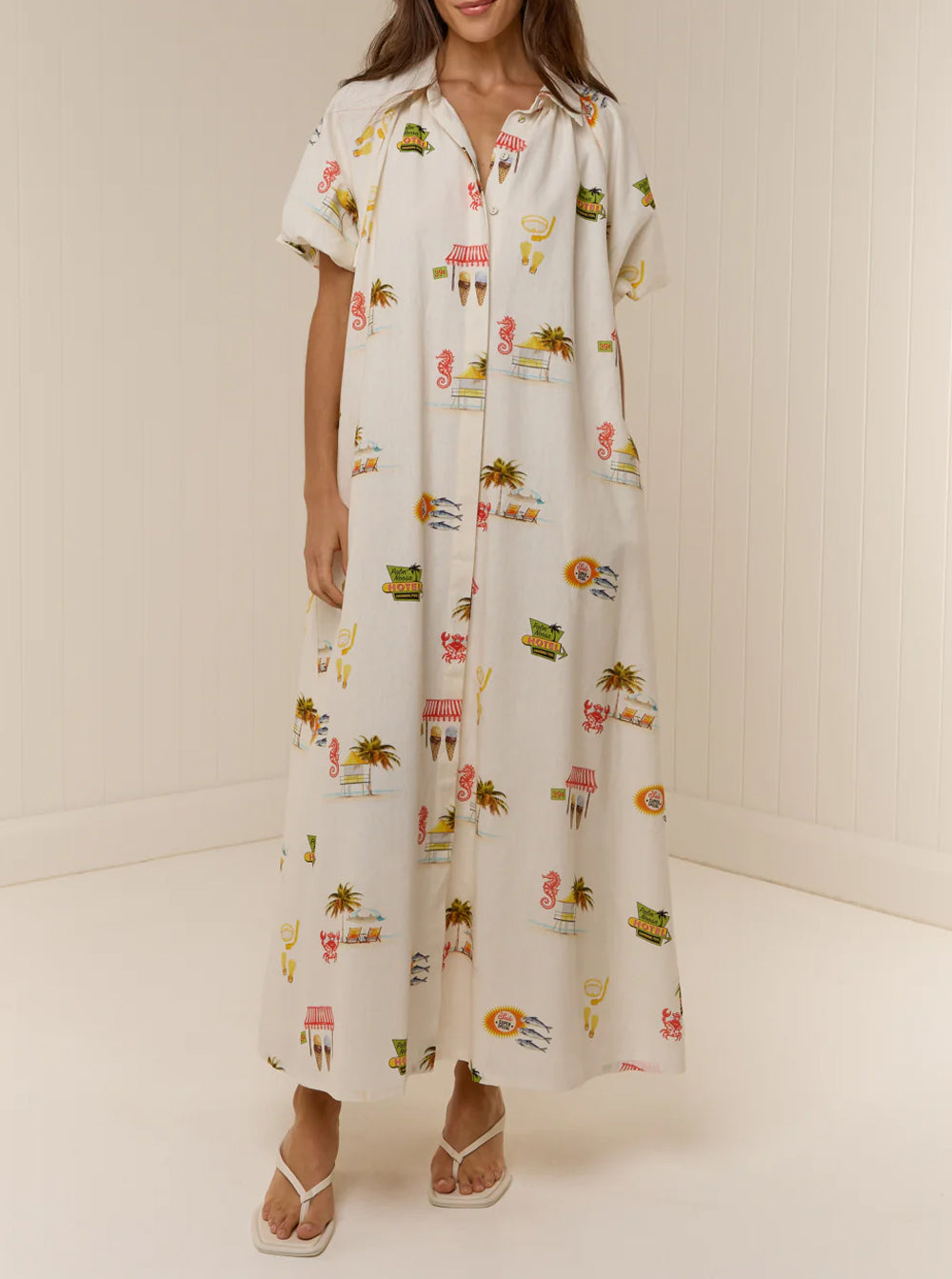 The Marla Dress is crafted from a premium linen blend, in Palm Noosa's exclusive Tropicana print.