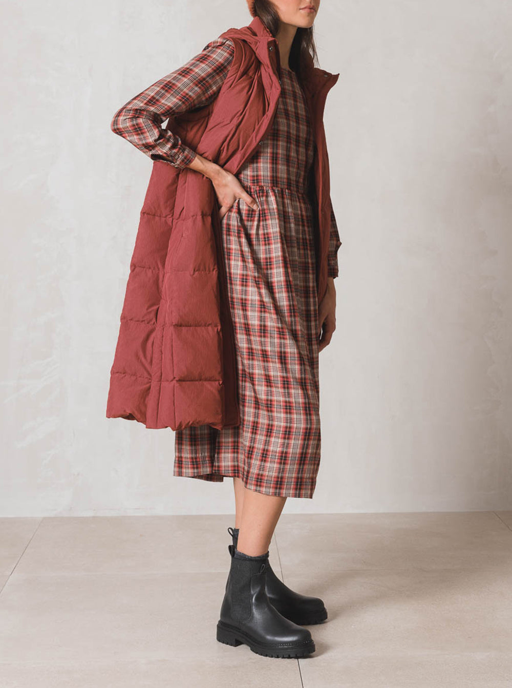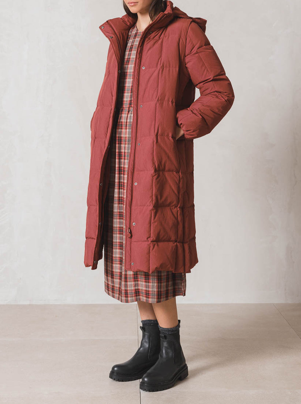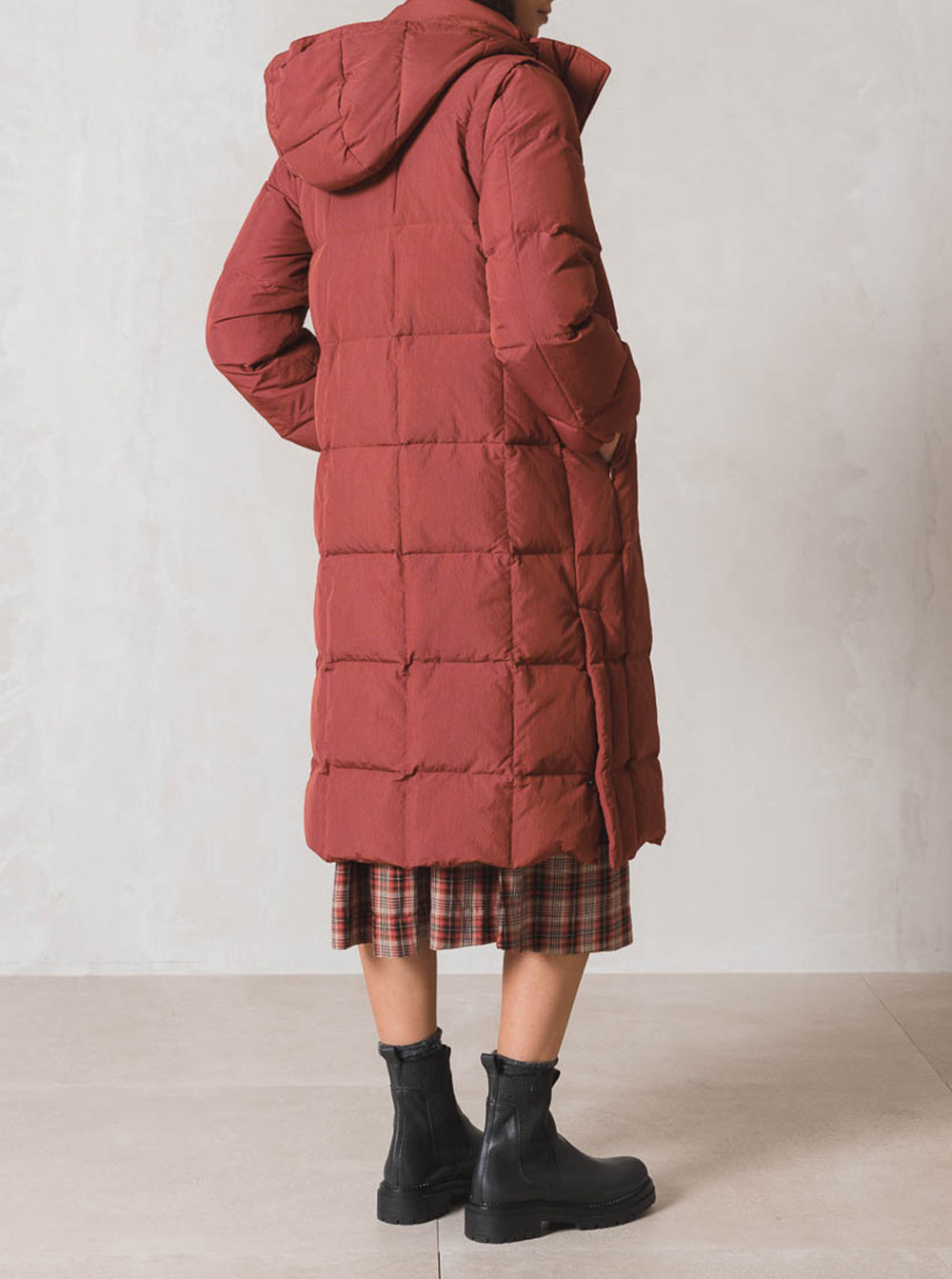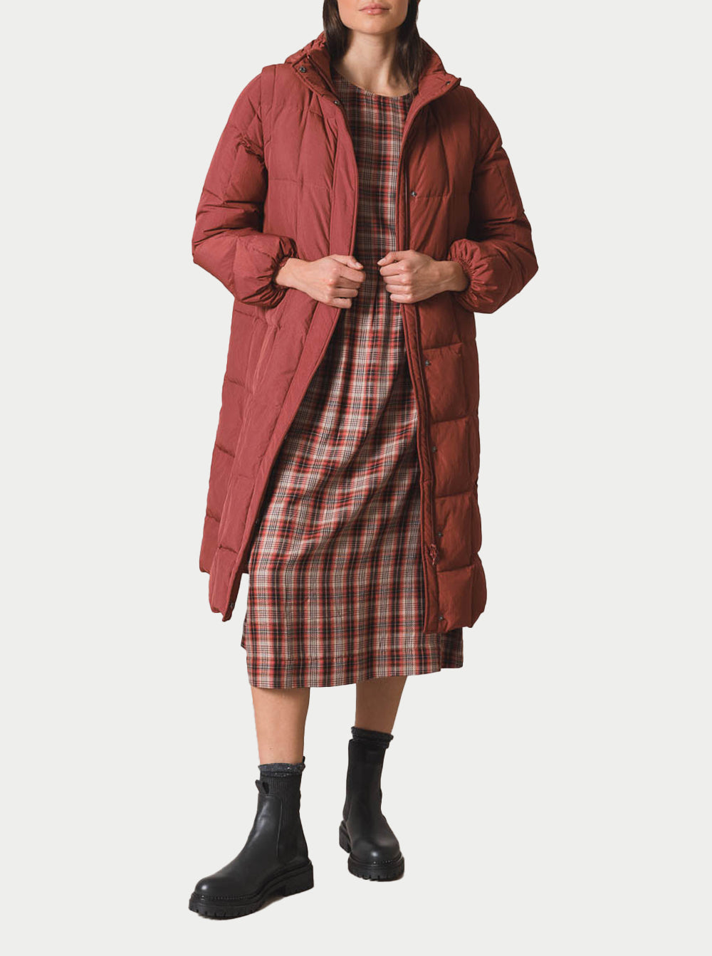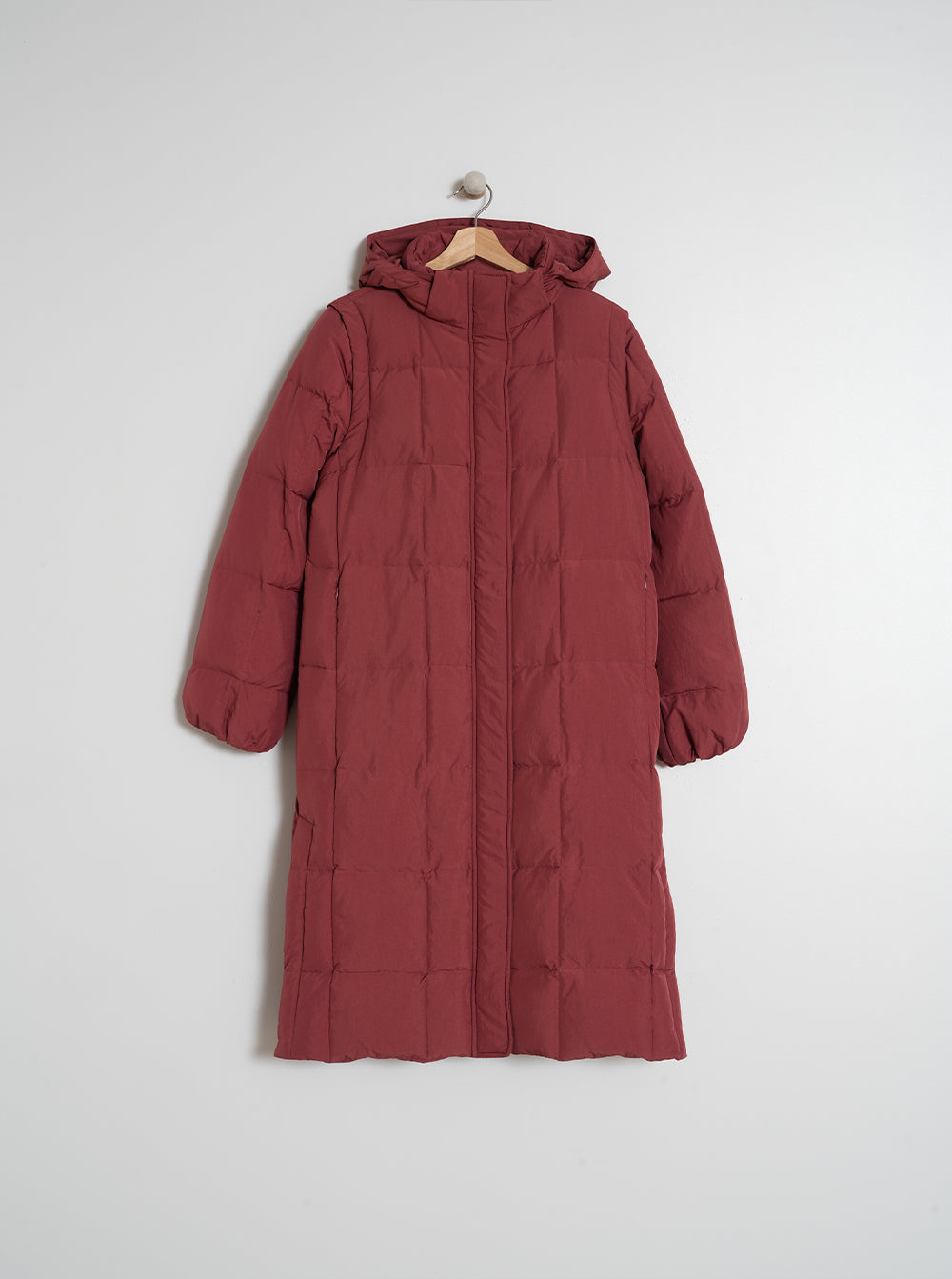 We introduce you to indi & cold's NEW BERLIN. This season's convertible down jacket. The sleeves can be removed to go from down jacket to vest. It has a loose fit and is maxi length. It has a quilted texture in a vertical square that gives it that different touch.