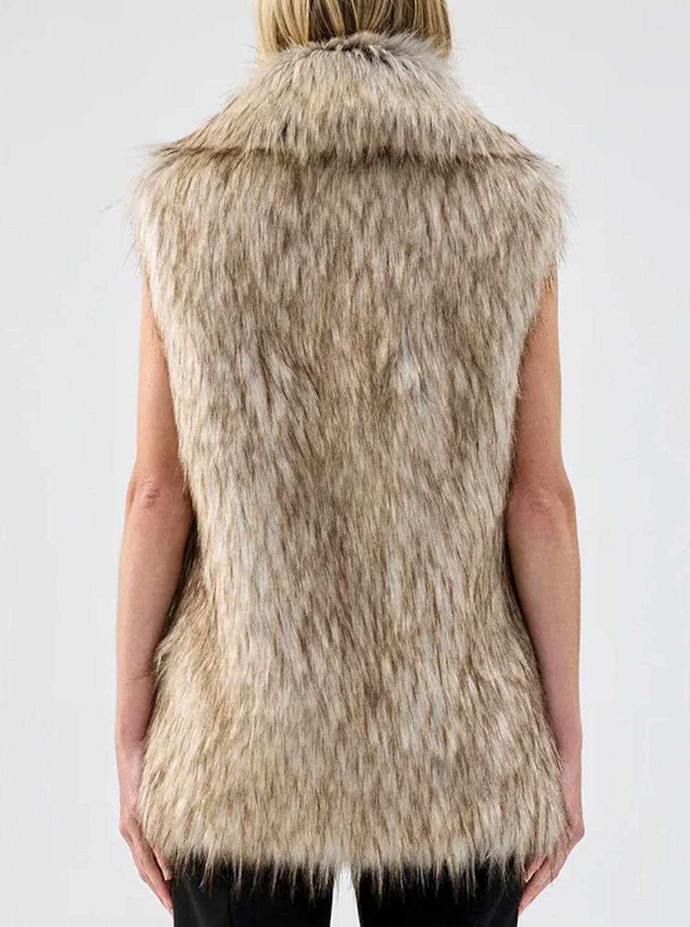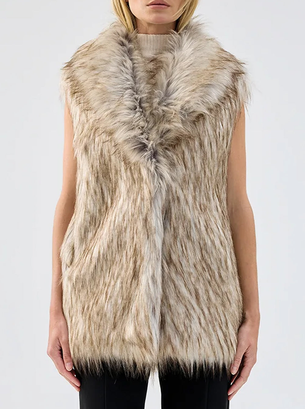 The Rubicon Vest is a bold statement piece, featuring a lush, oversized collar, two front pockets, and Unreal Fur's softest long-pile natural fur.