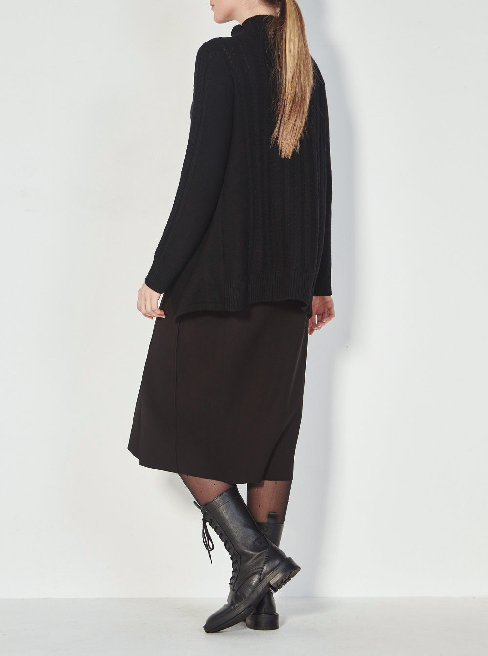 The Basque waist and panelled design provide a flattering silhouette. Perfect for any occasion, this skirt offers both function and fashion.